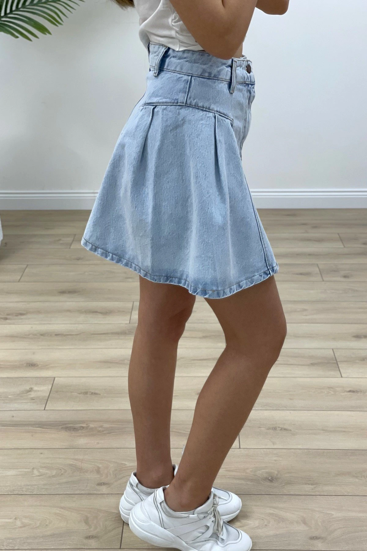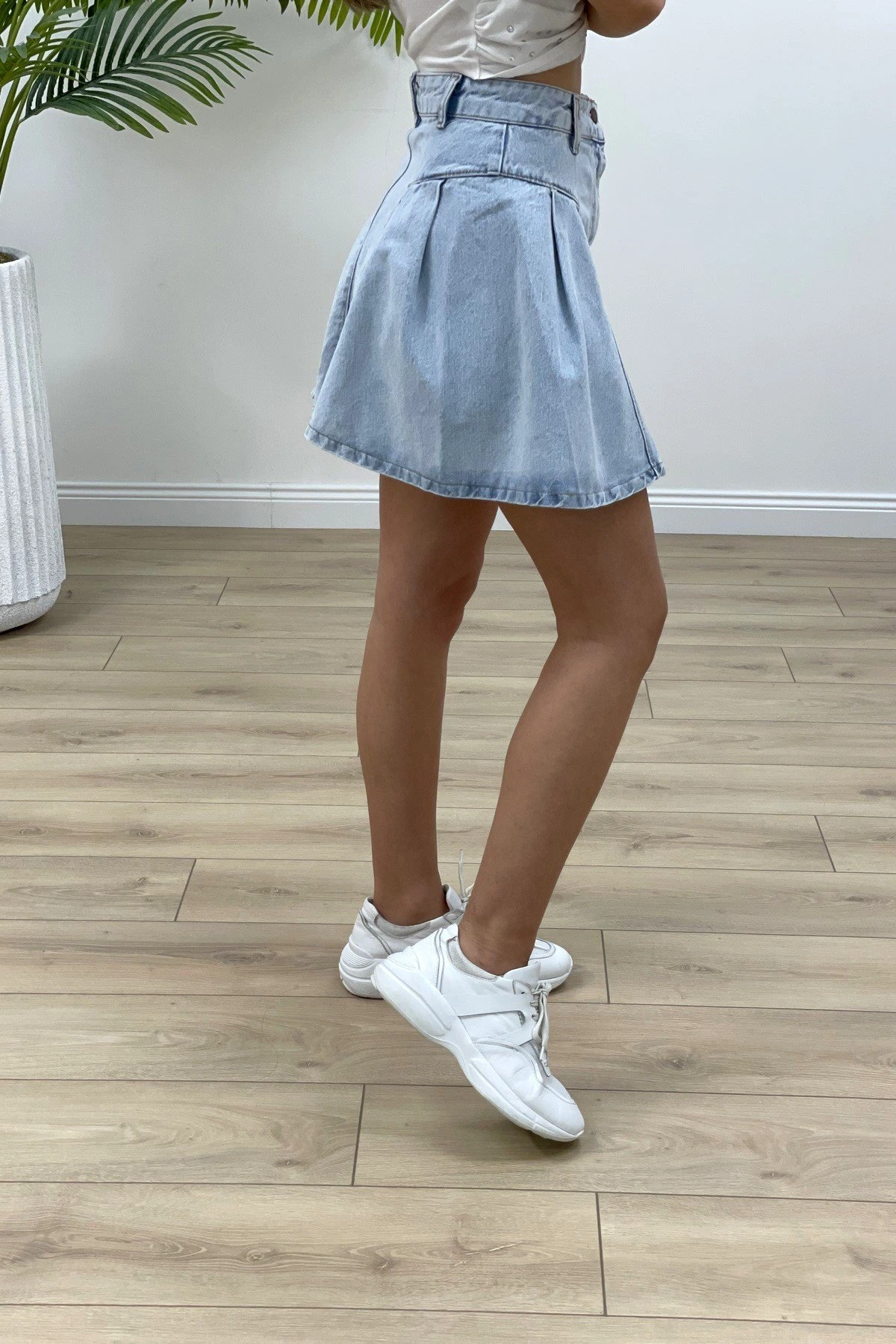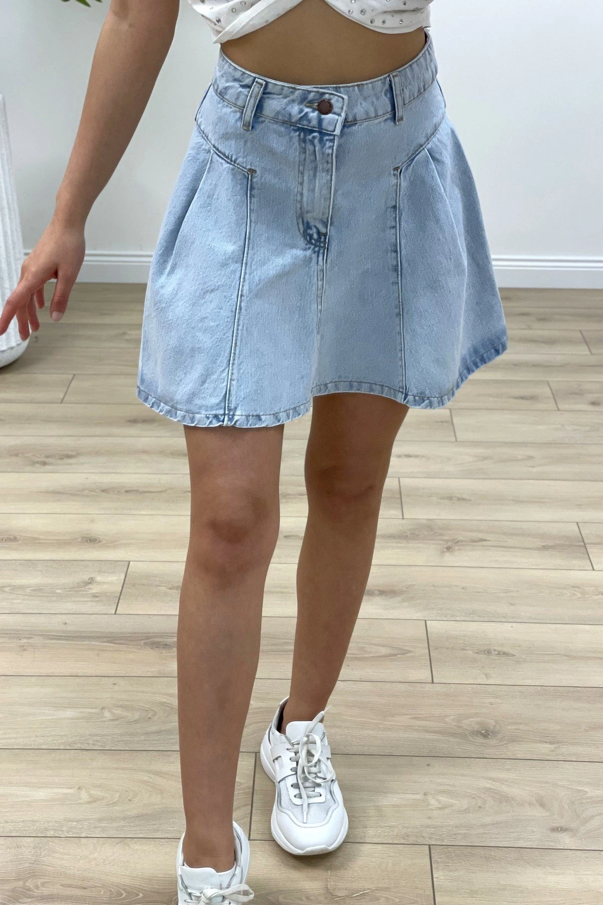 VOLANLI MİNİ KOT ETEK – BUZ MAVİ