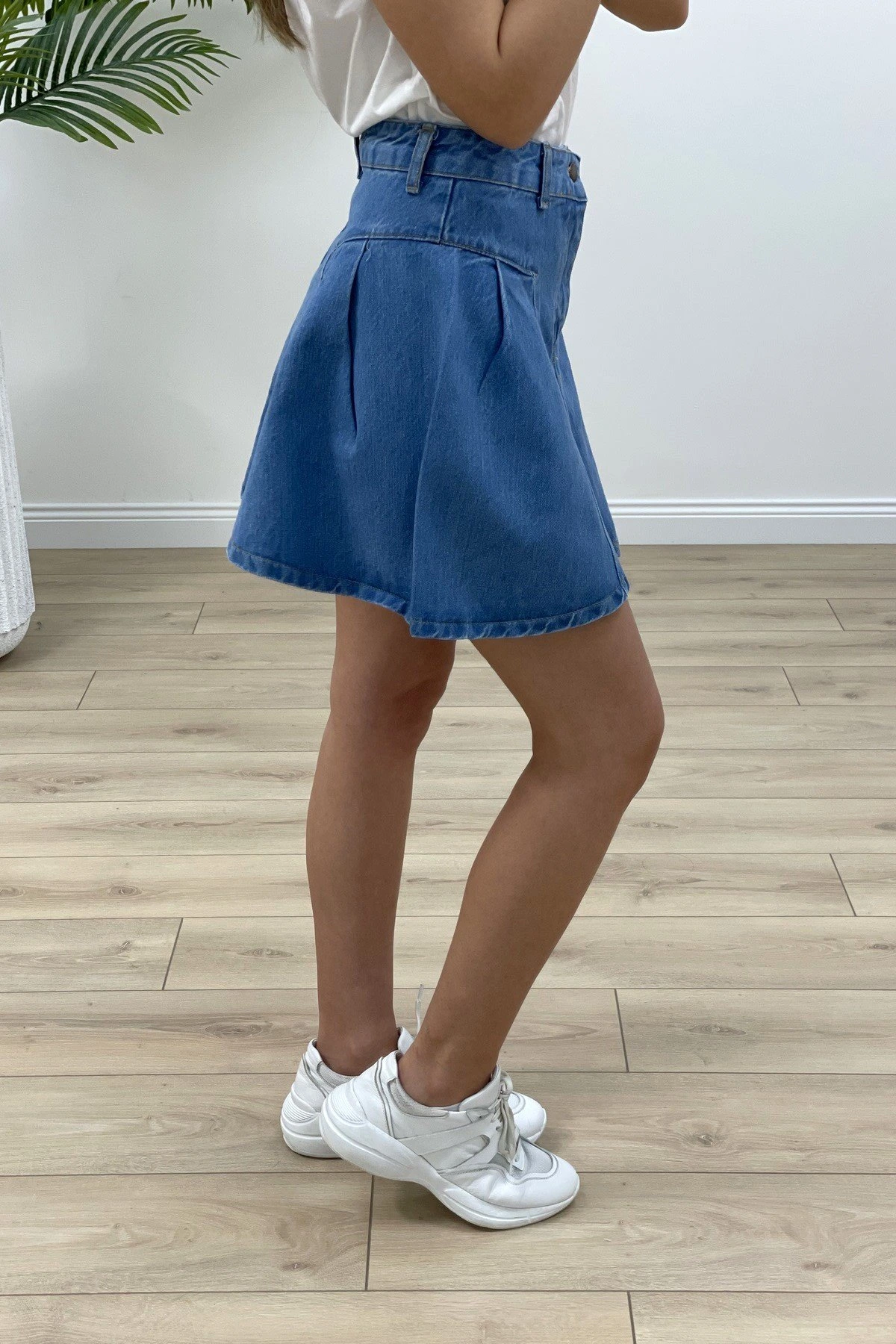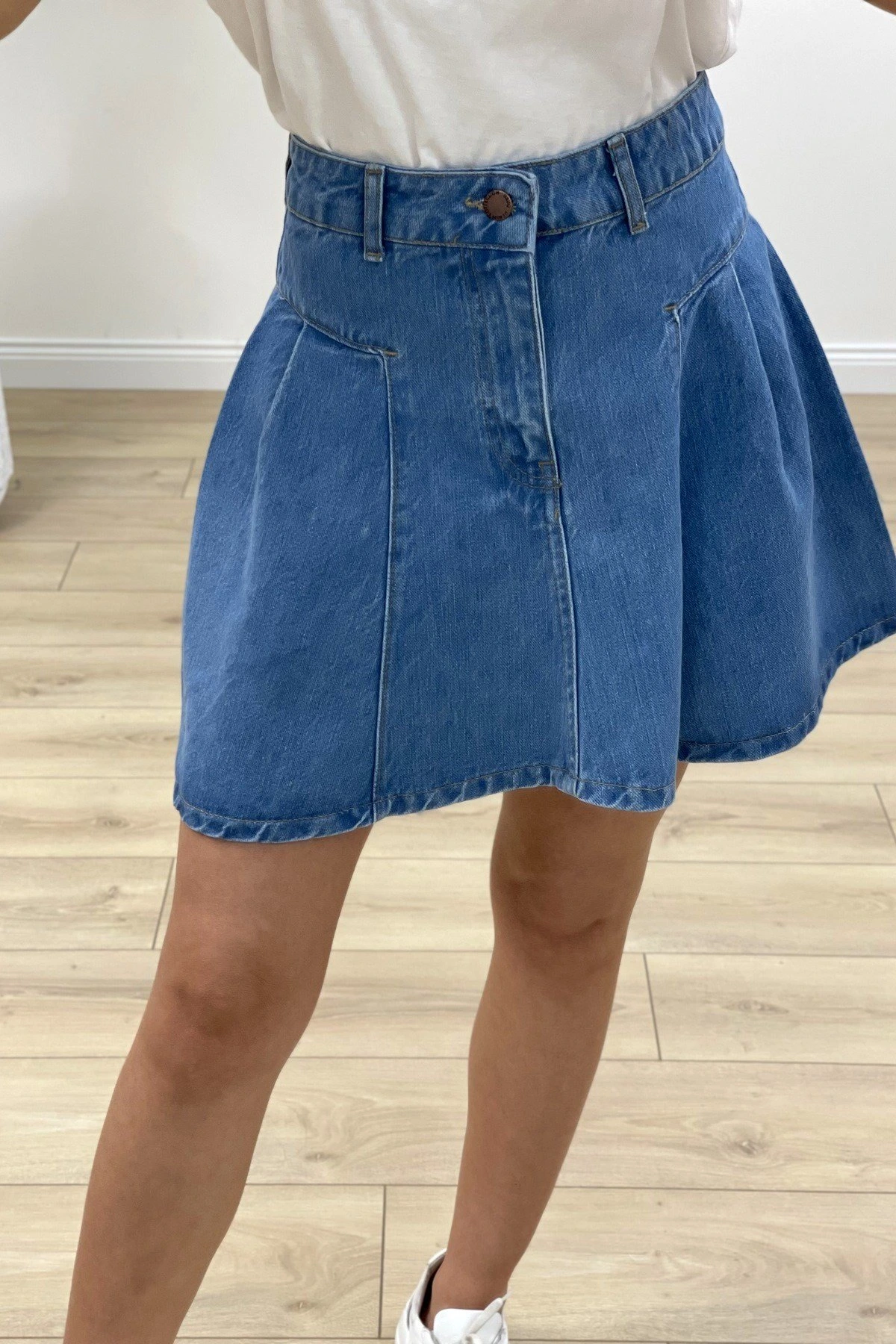 VOLANLI MİNİ KOT ETEK – MAVİ