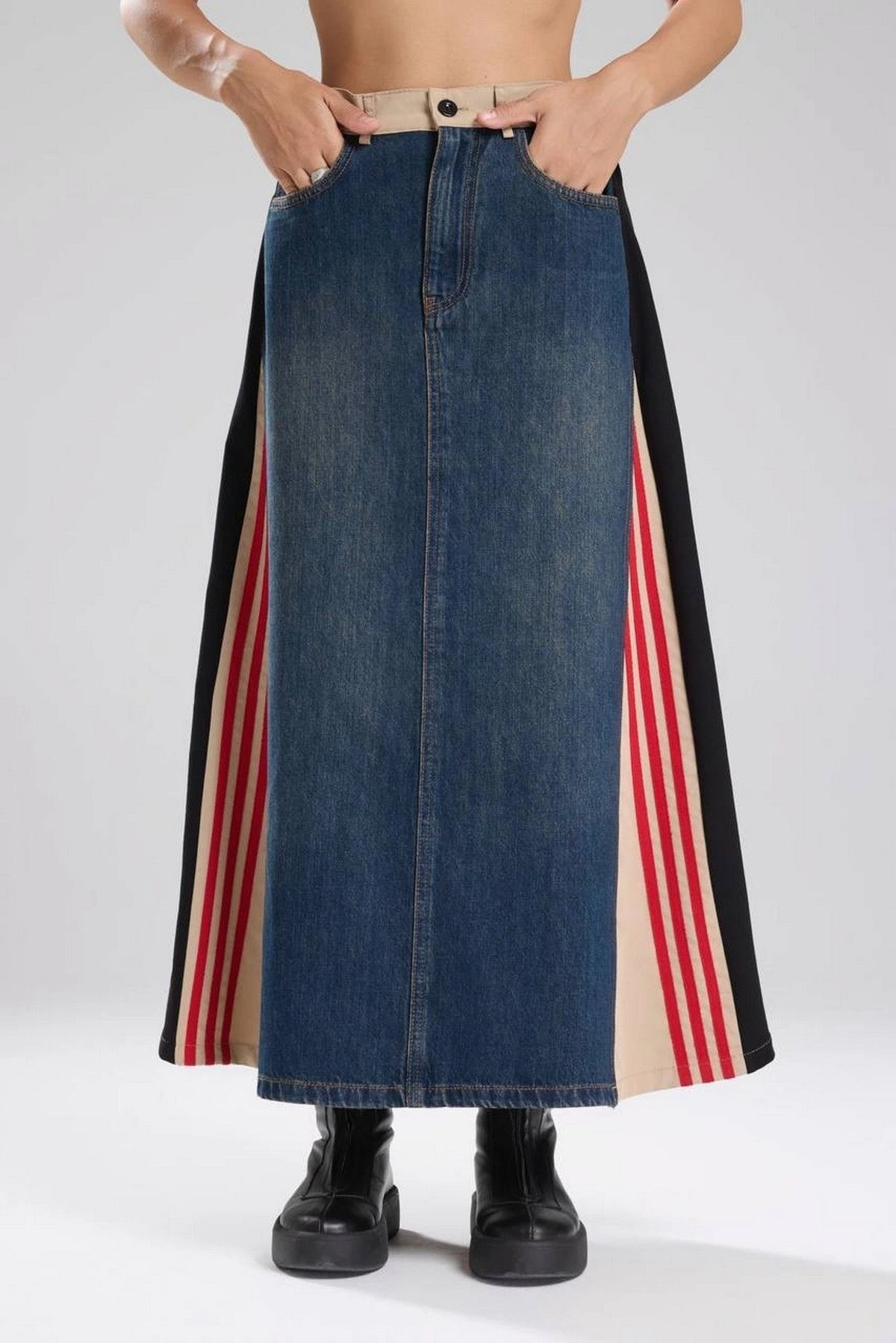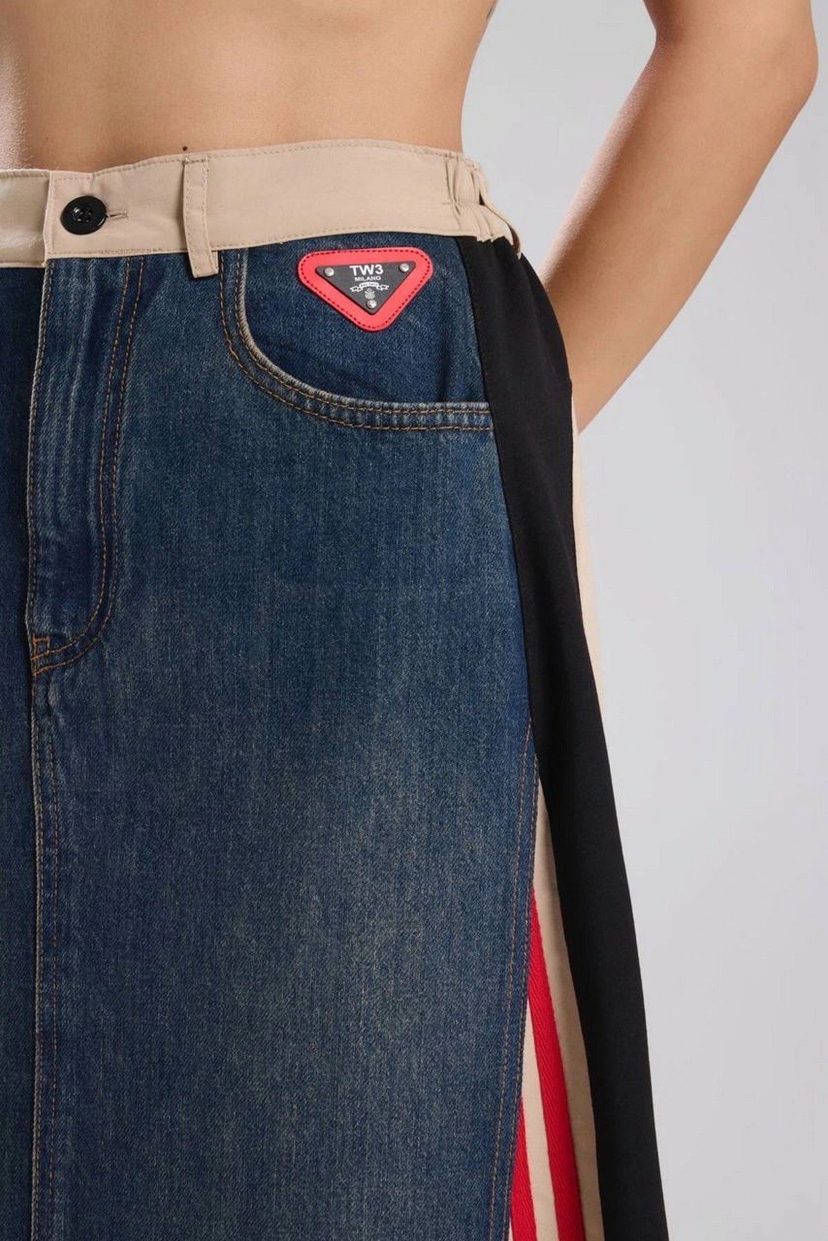 YAN ŞERİT ARKA KUMAŞ MİX JEAN ETEK – BEJ