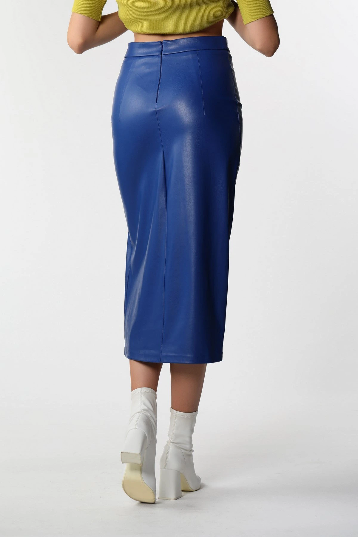 YIRTMAÇLI KALEM DERİ ETEK – SAKS