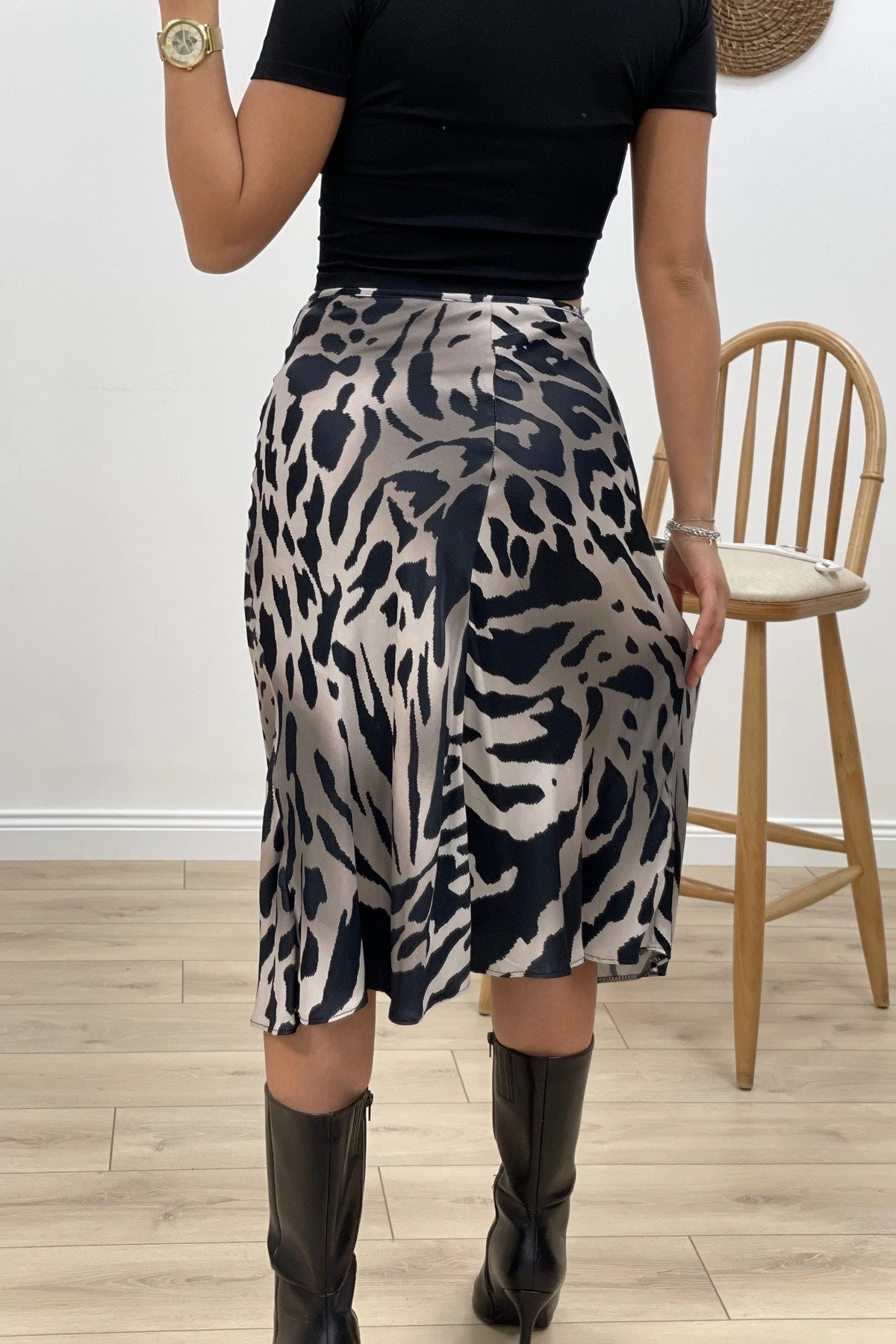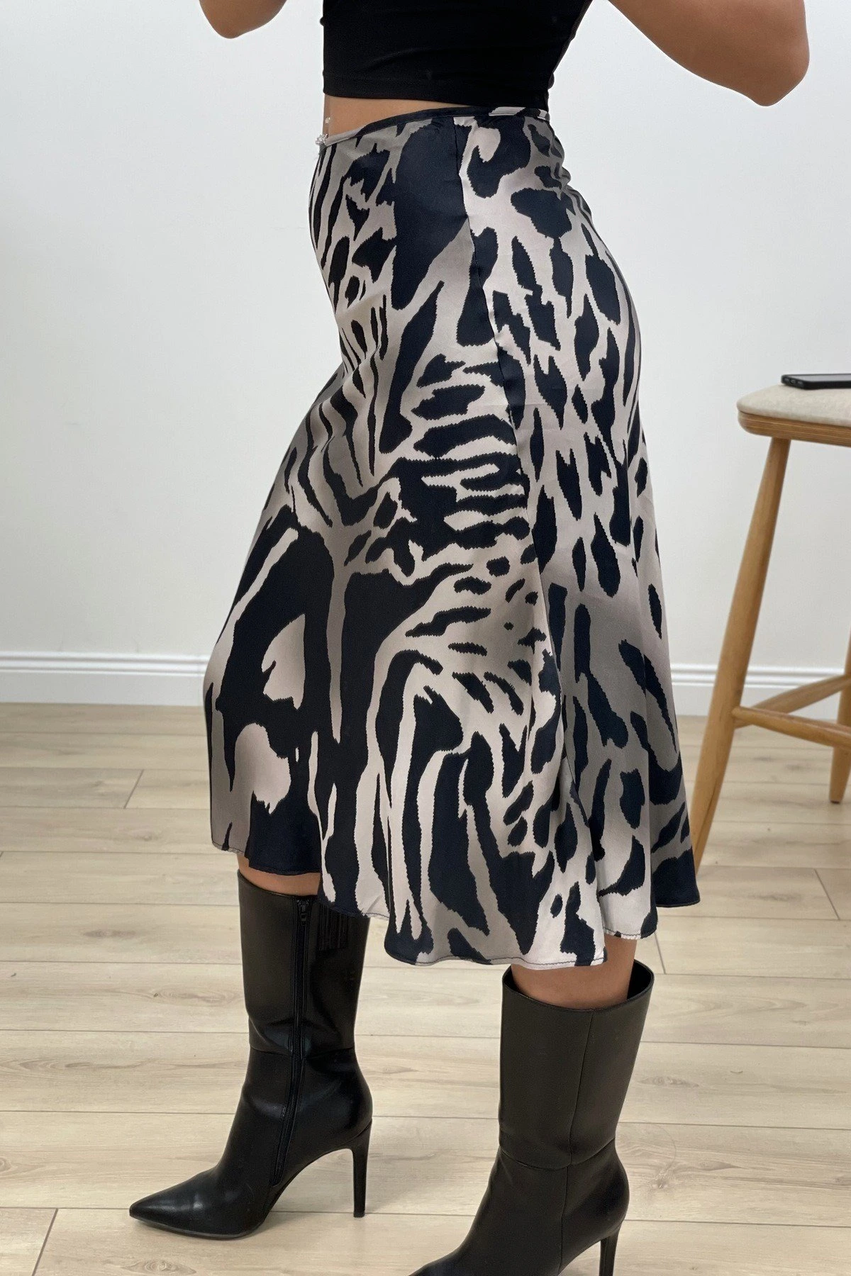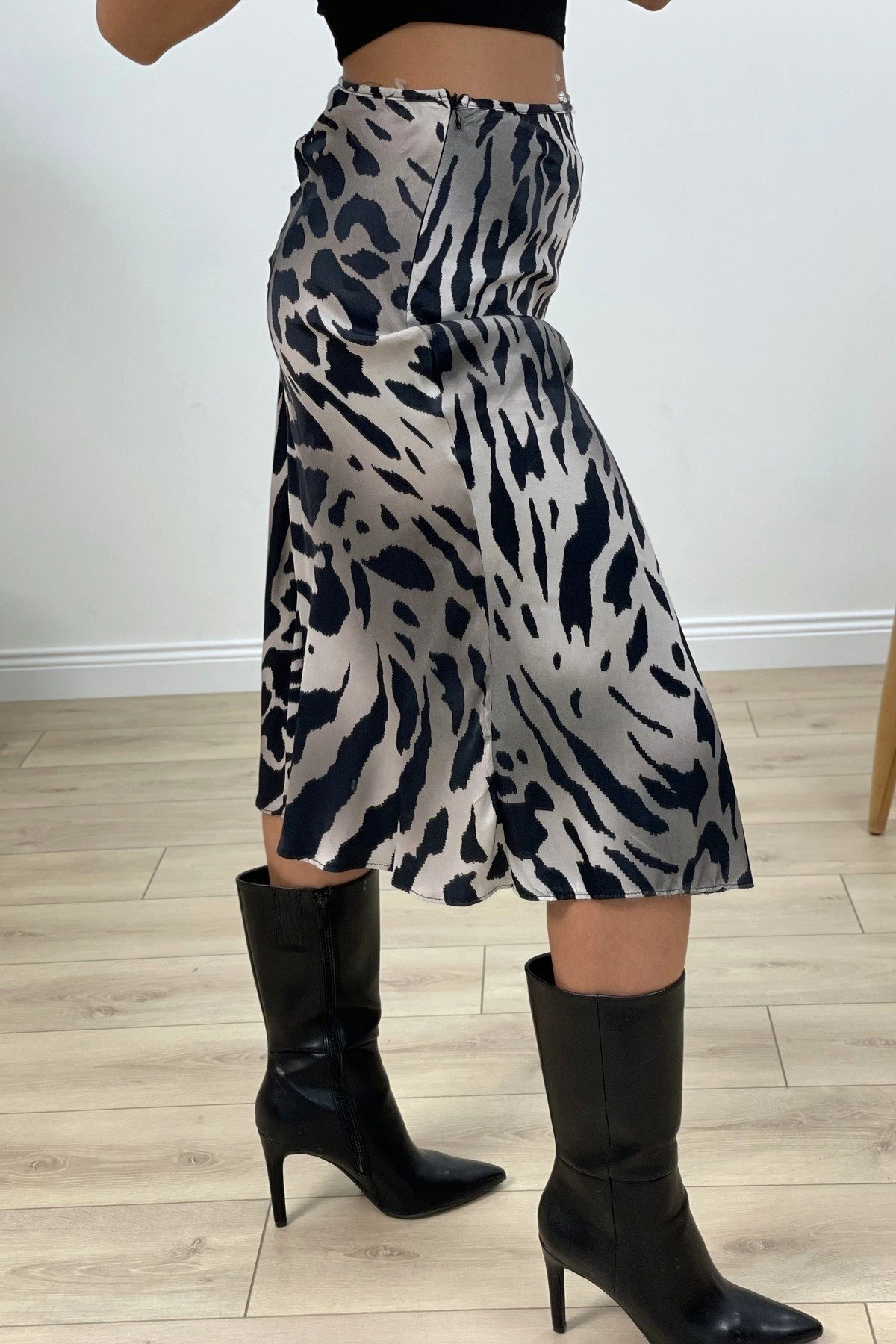 ZEBRA DESEN SATEN ETEK – SİYAH