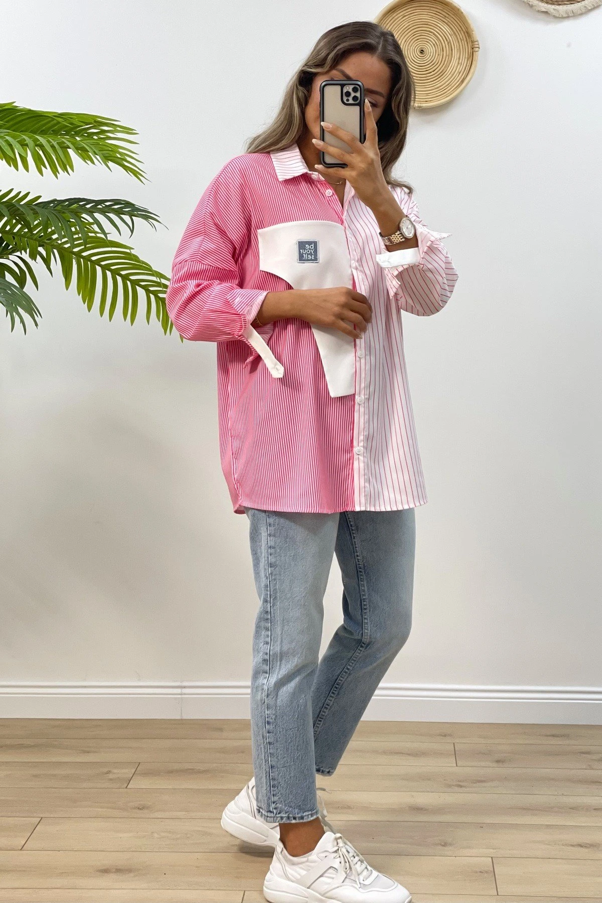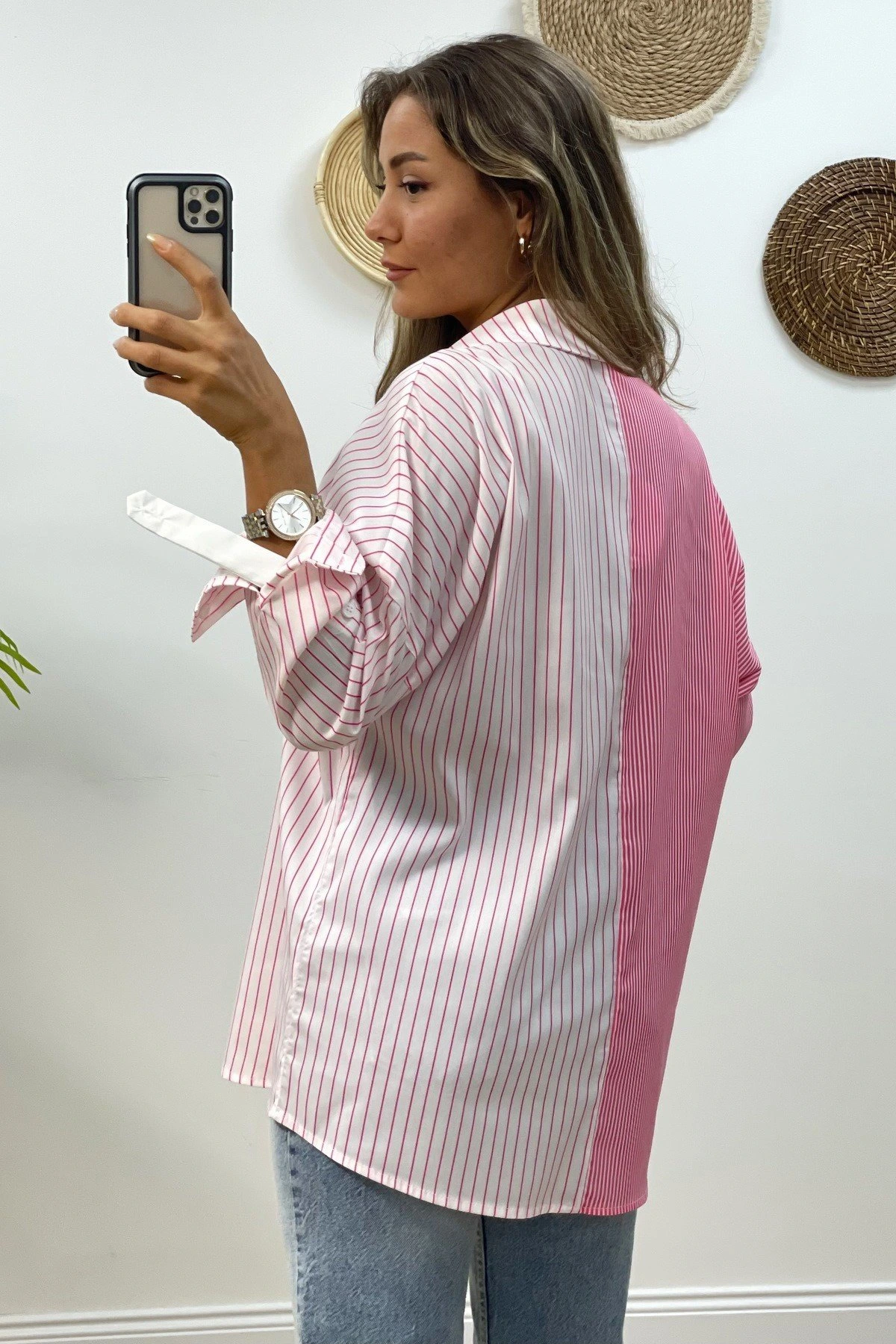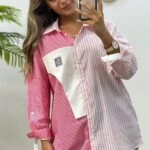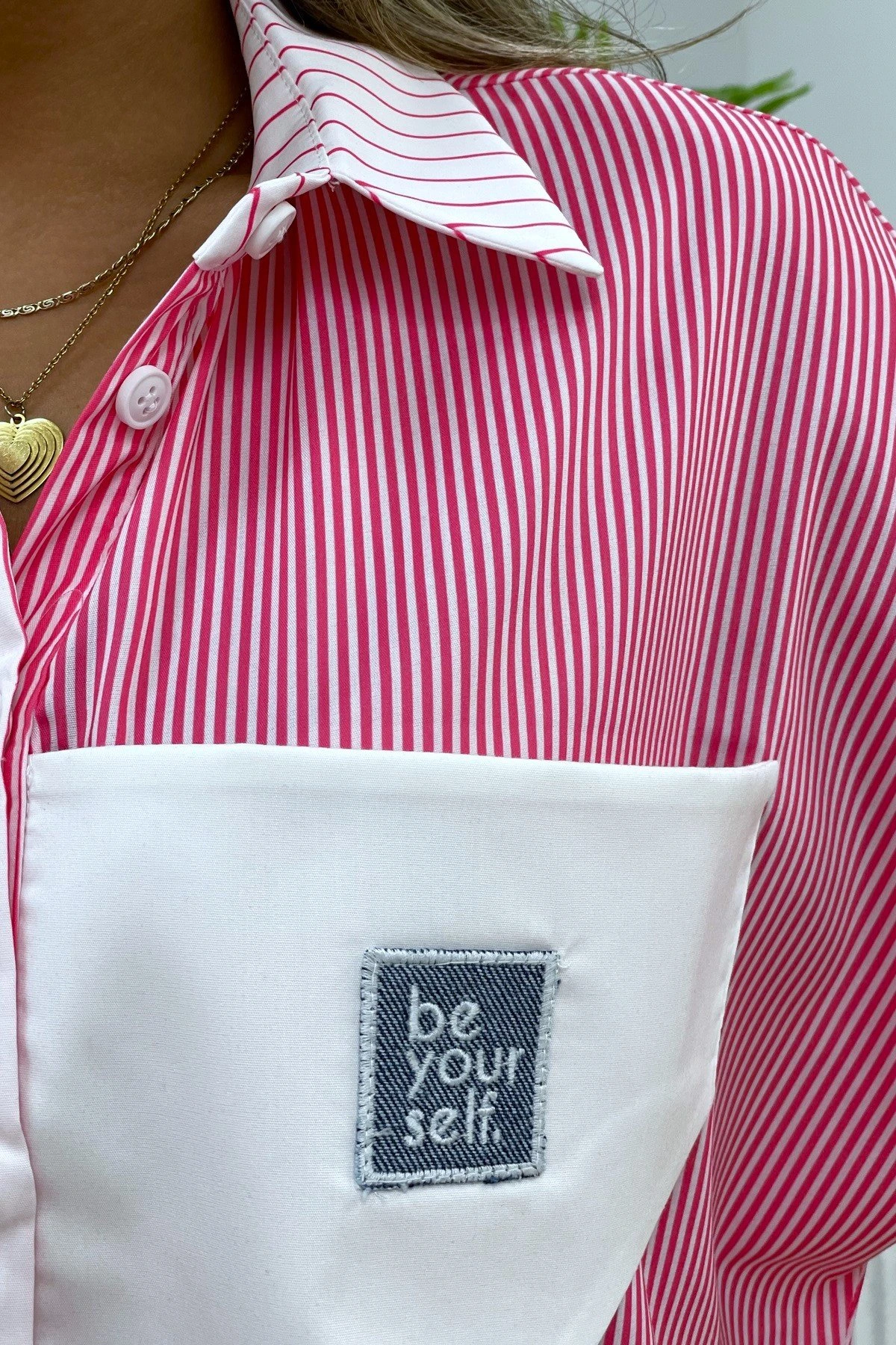 2 RENK ÇİZGİLİ CEP PARÇALI GÖMLEK – PEMBE