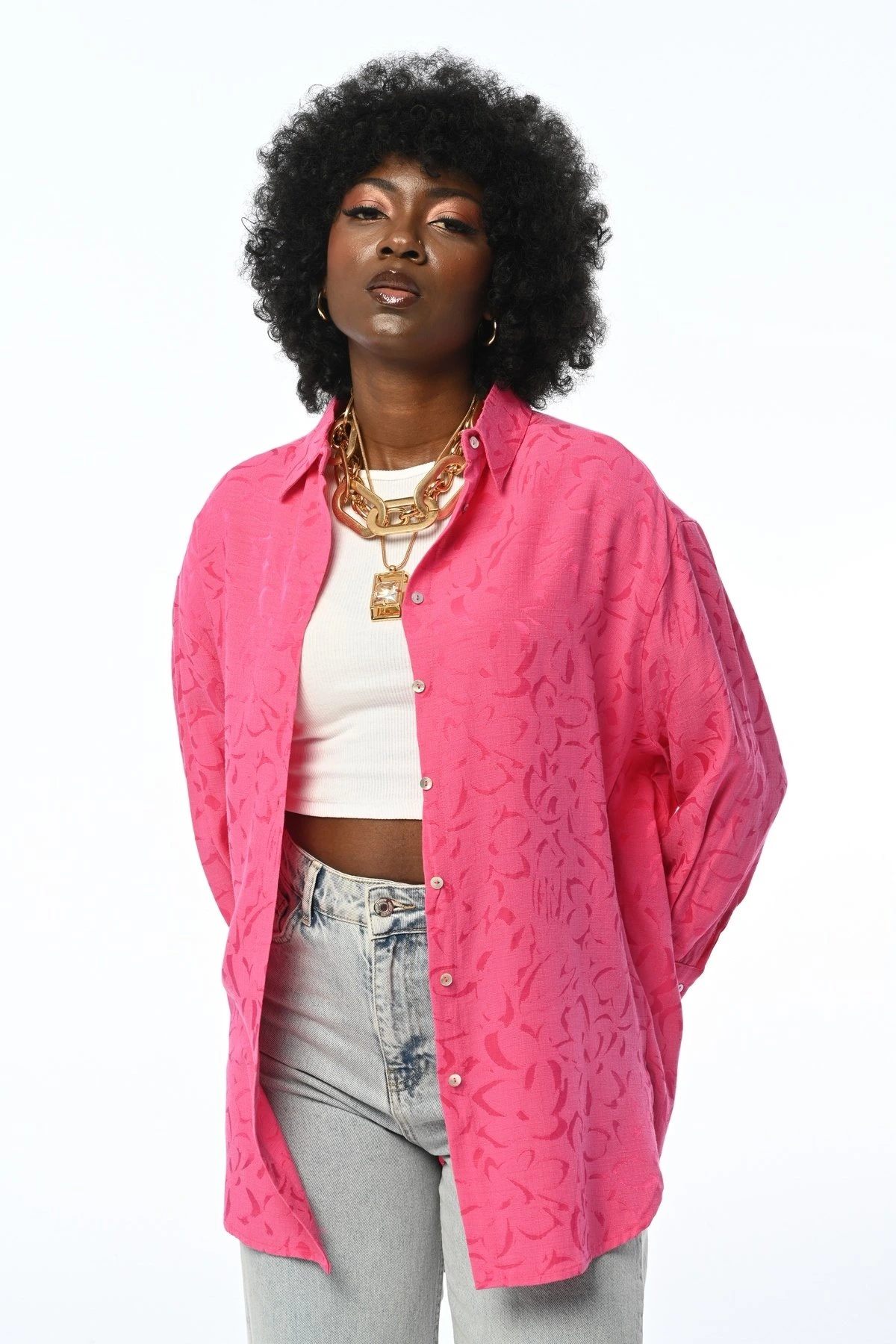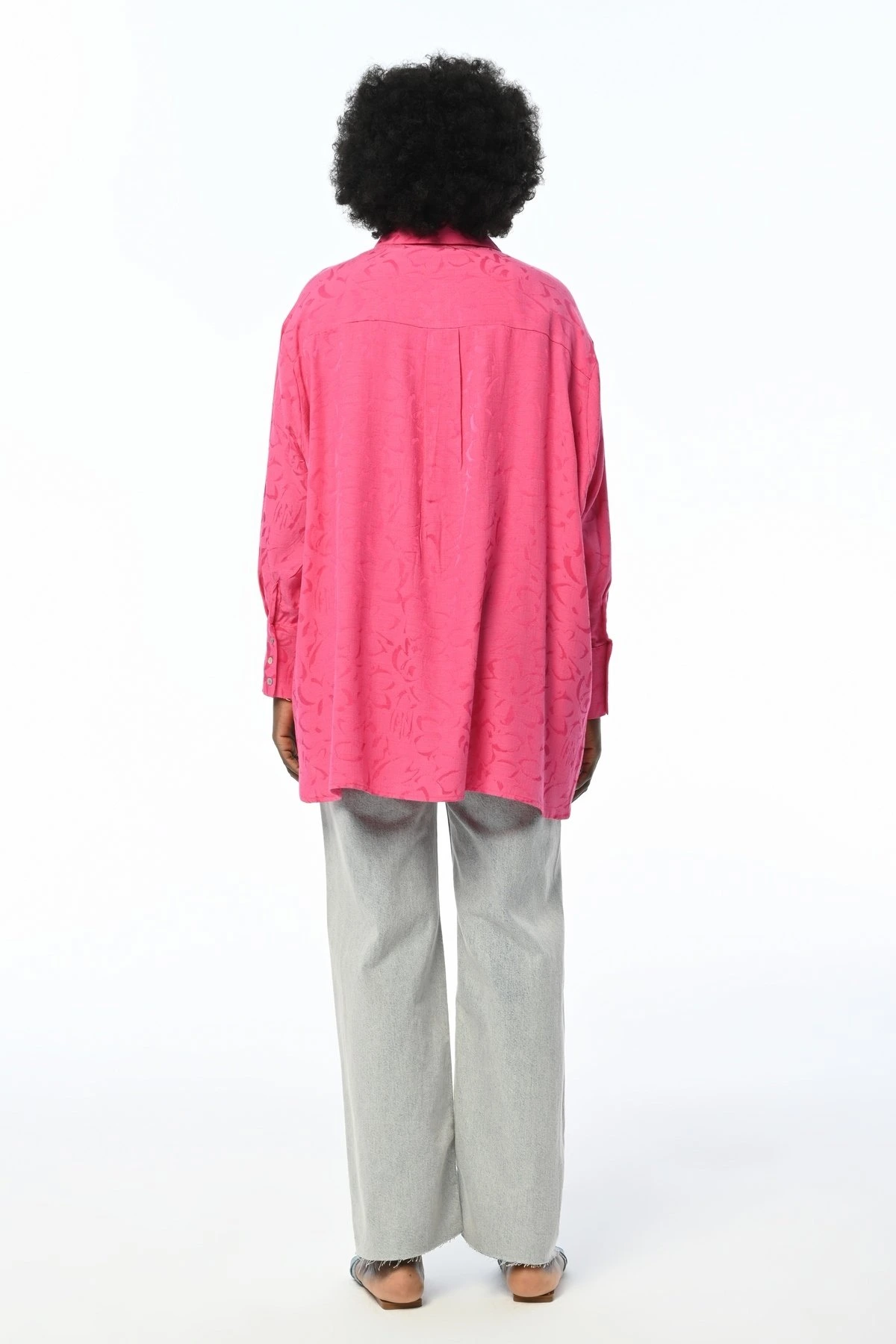 33152 ÖN OVAL KENDİNDEN DESENLİ SALAŞ VİSKON PAMUK GÖMLEK – FUŞYA