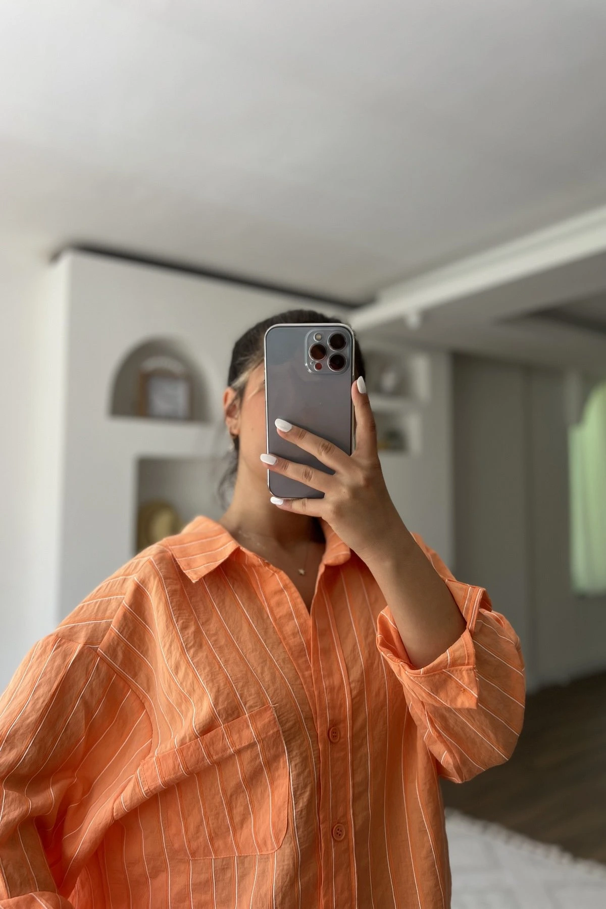 ARKA A PİLE ÇİZGİ DOKU MODAL VİSKON GÖMLEK – ORANGE