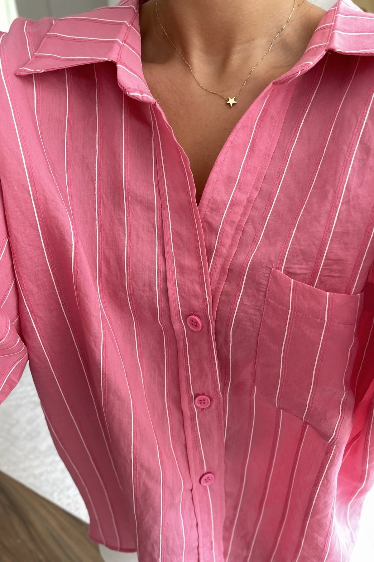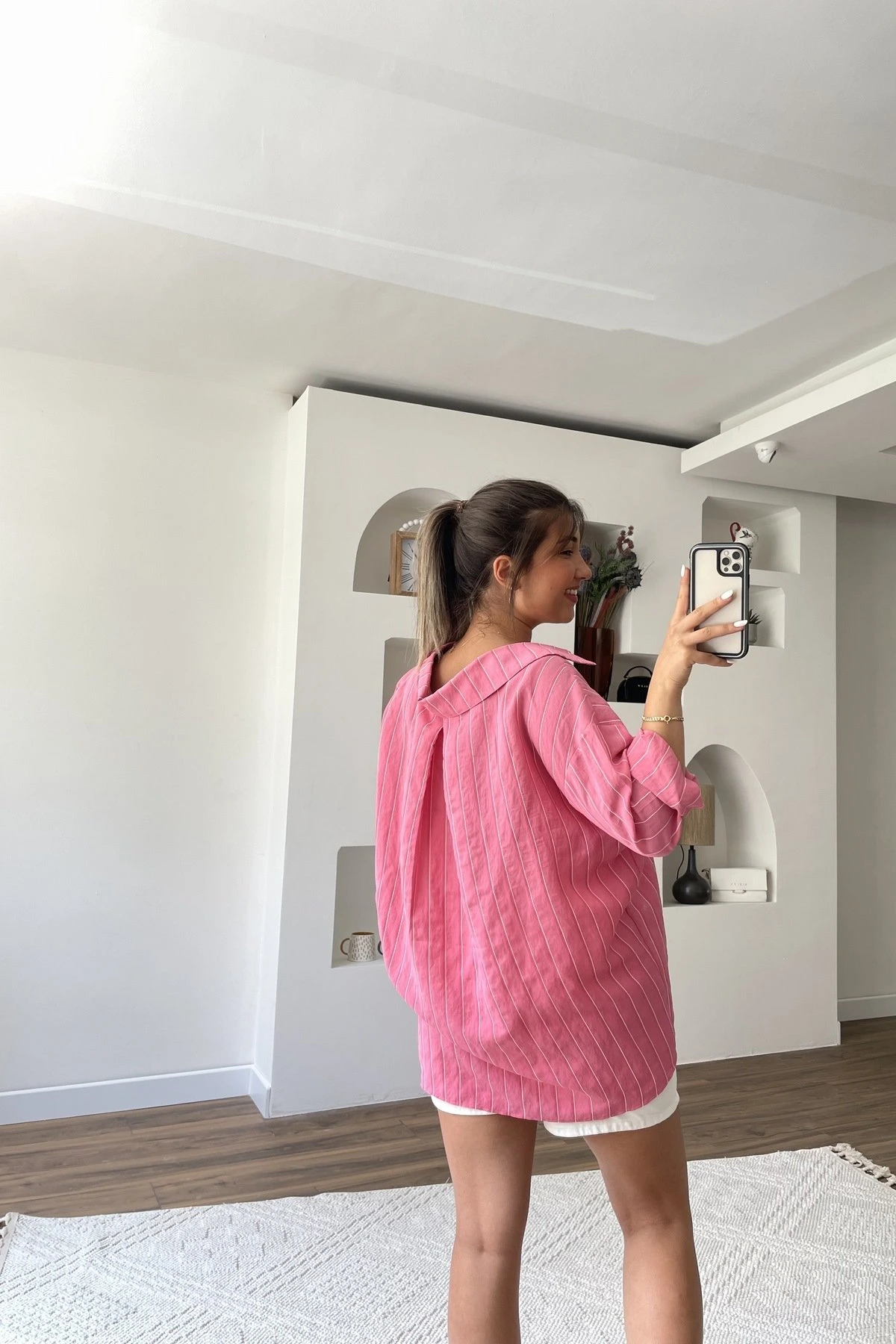 ARKA A PİLE ÇİZGİ DOKU MODAL VİSKON GÖMLEK – PEMBE