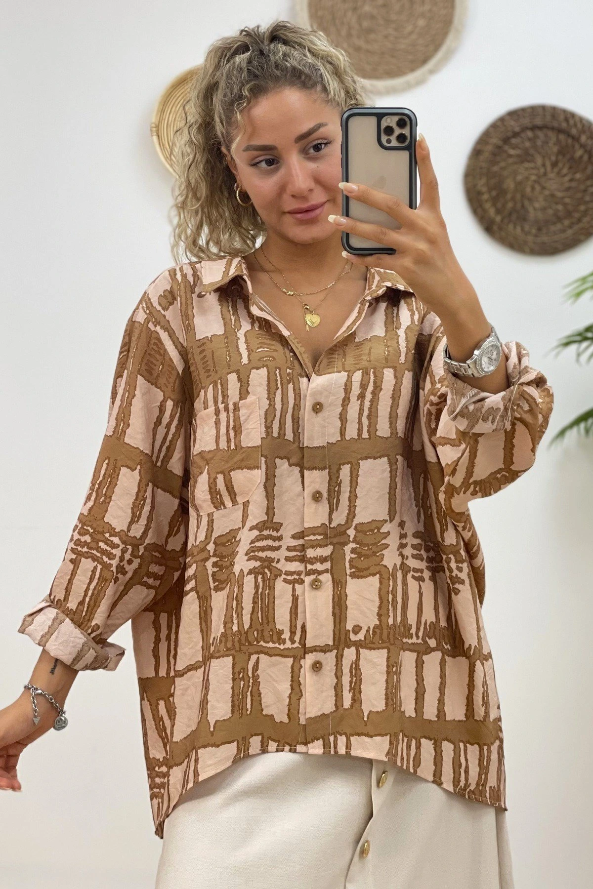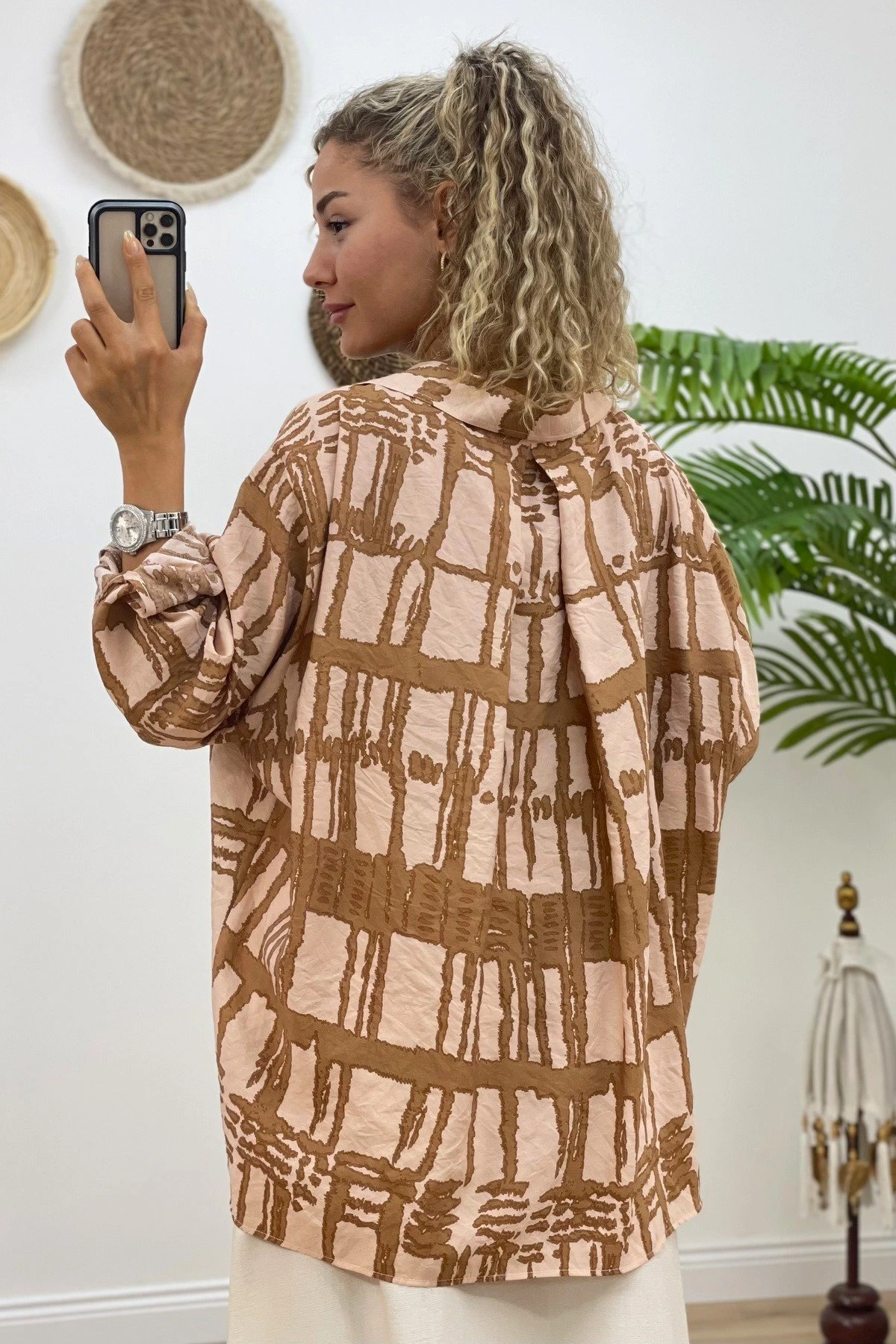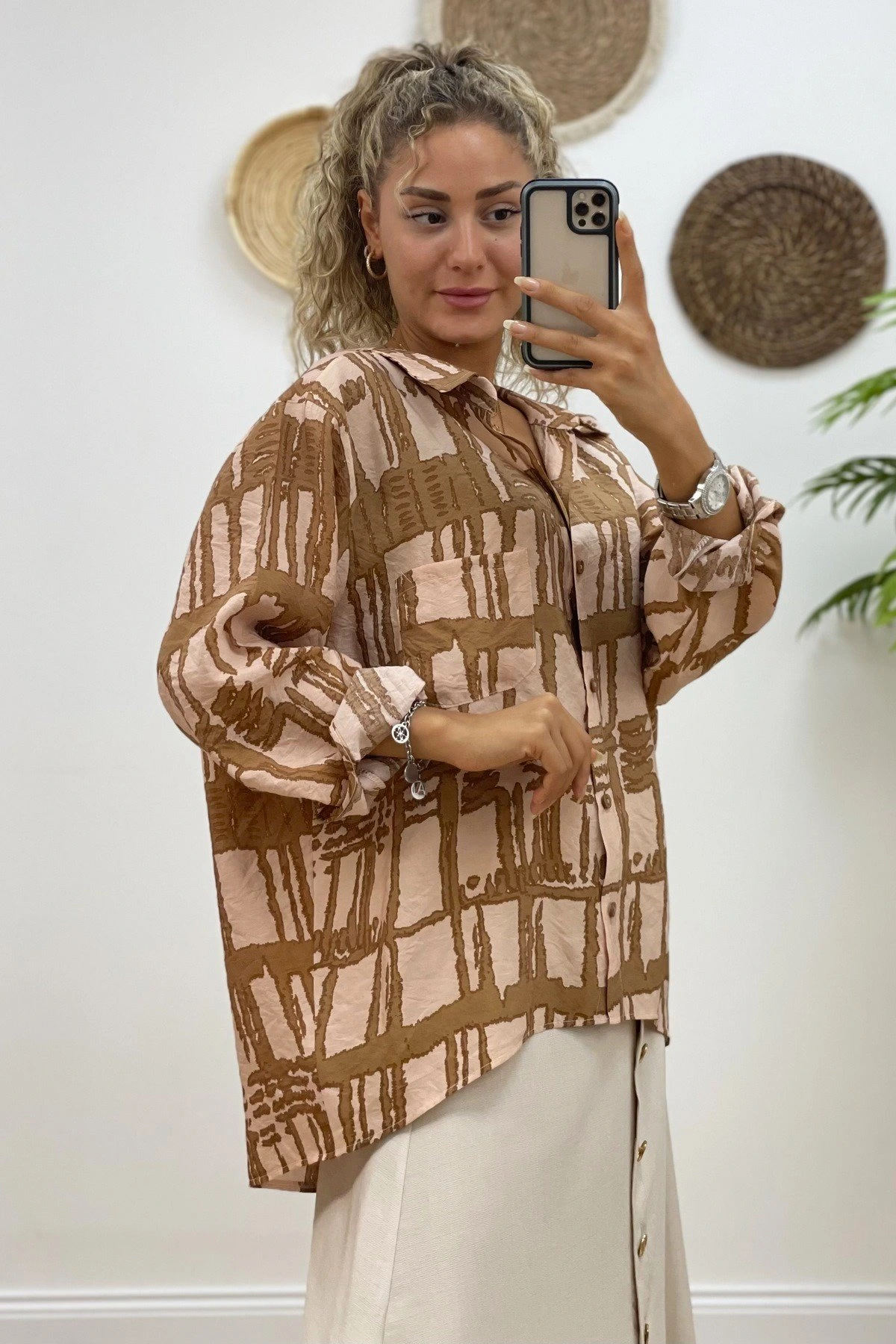 ARKA A PİLE DESENLİ TEK CEP SALAŞ GÖMLEK – KAHVE