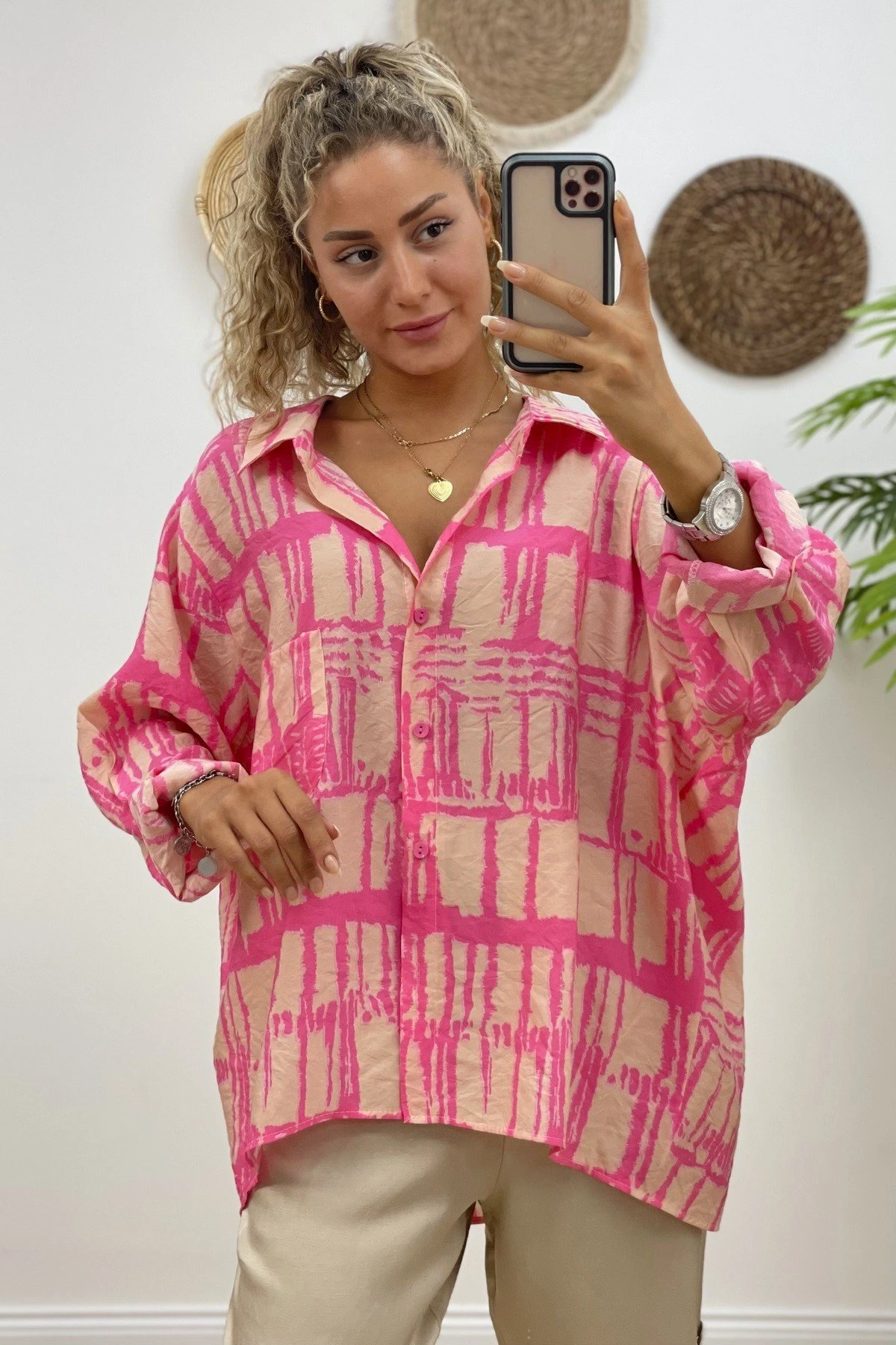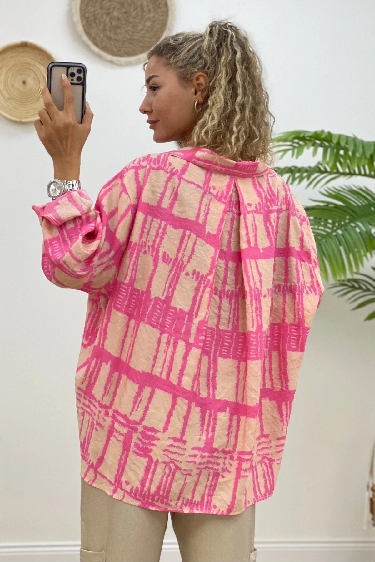 ARKA A PİLE DESENLİ TEK CEP SALAŞ GÖMLEK – PEMBE
