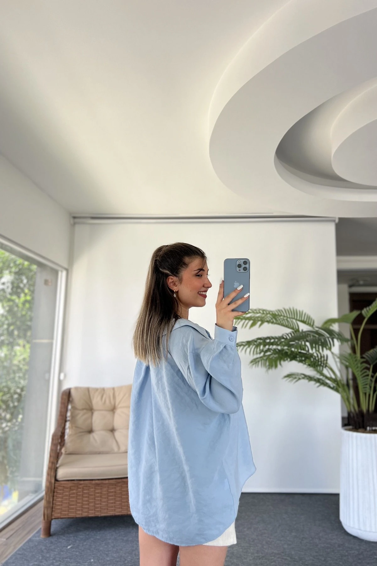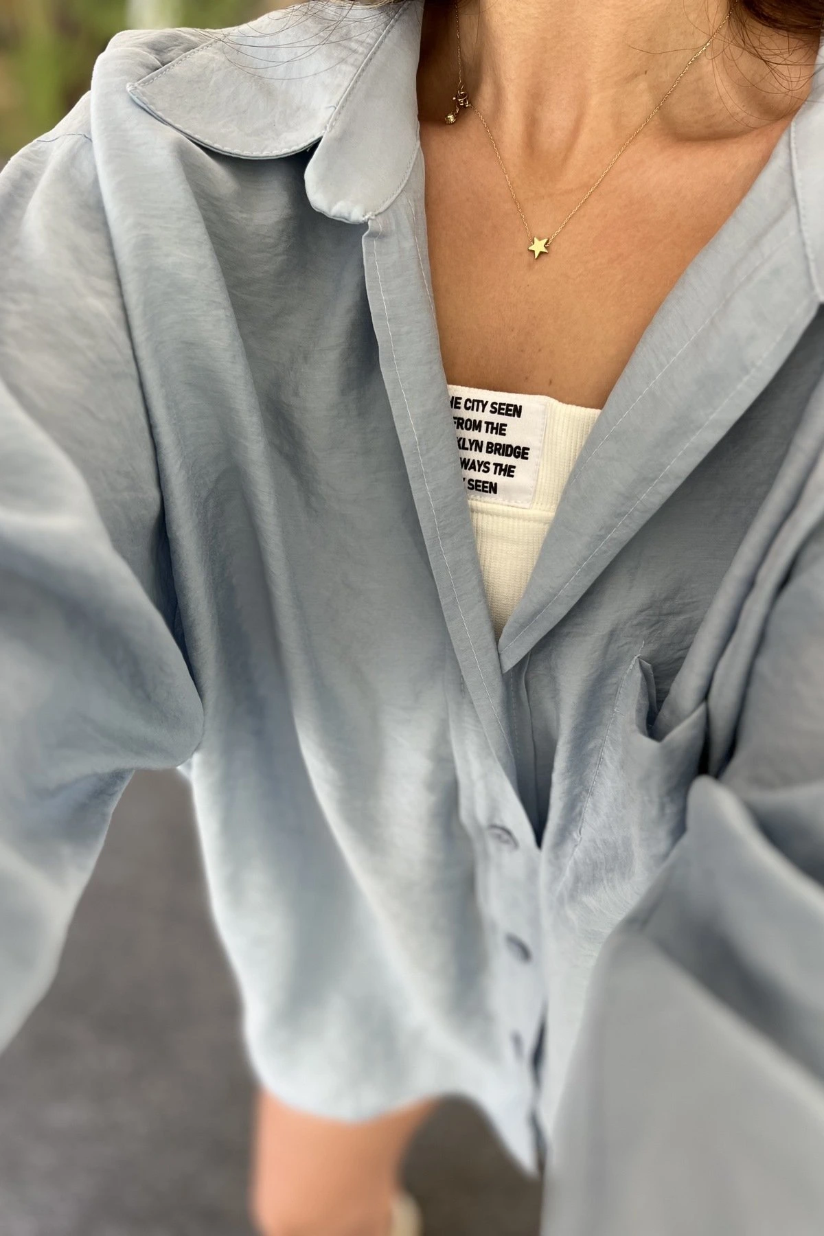 ARKA A PİLE DÜŞÜK OMUZ TEK CEP MODAL GÖMLEK – AÇIK MAVİ