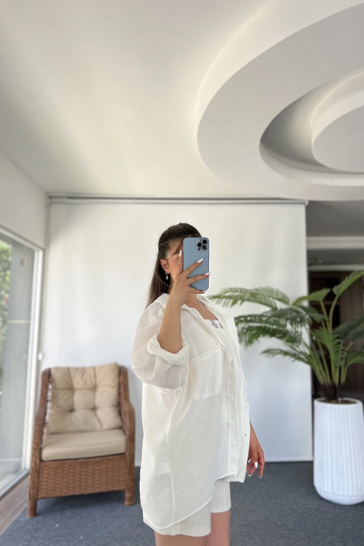 ARKA A PİLE DÜŞÜK OMUZ TEK CEP MODAL GÖMLEK – BEYAZ