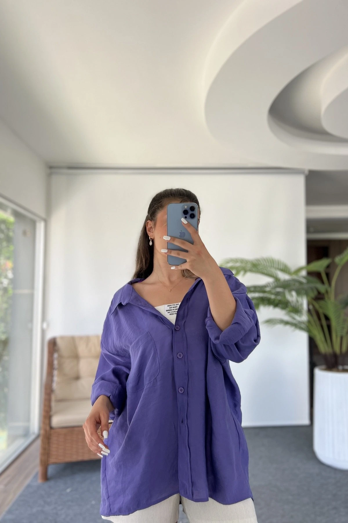ARKA A PİLE DÜŞÜK OMUZ TEK CEP MODAL GÖMLEK – MOR