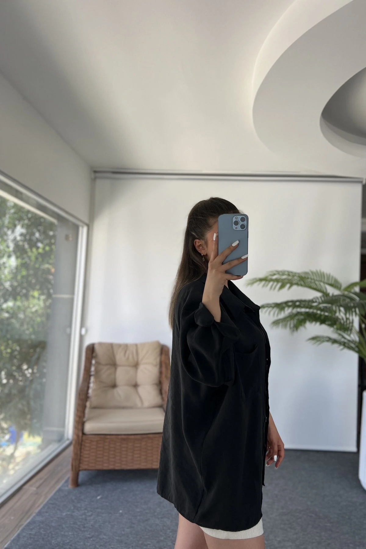 ARKA A PİLE DÜŞÜK OMUZ TEK CEP MODAL GÖMLEK – SİYAH