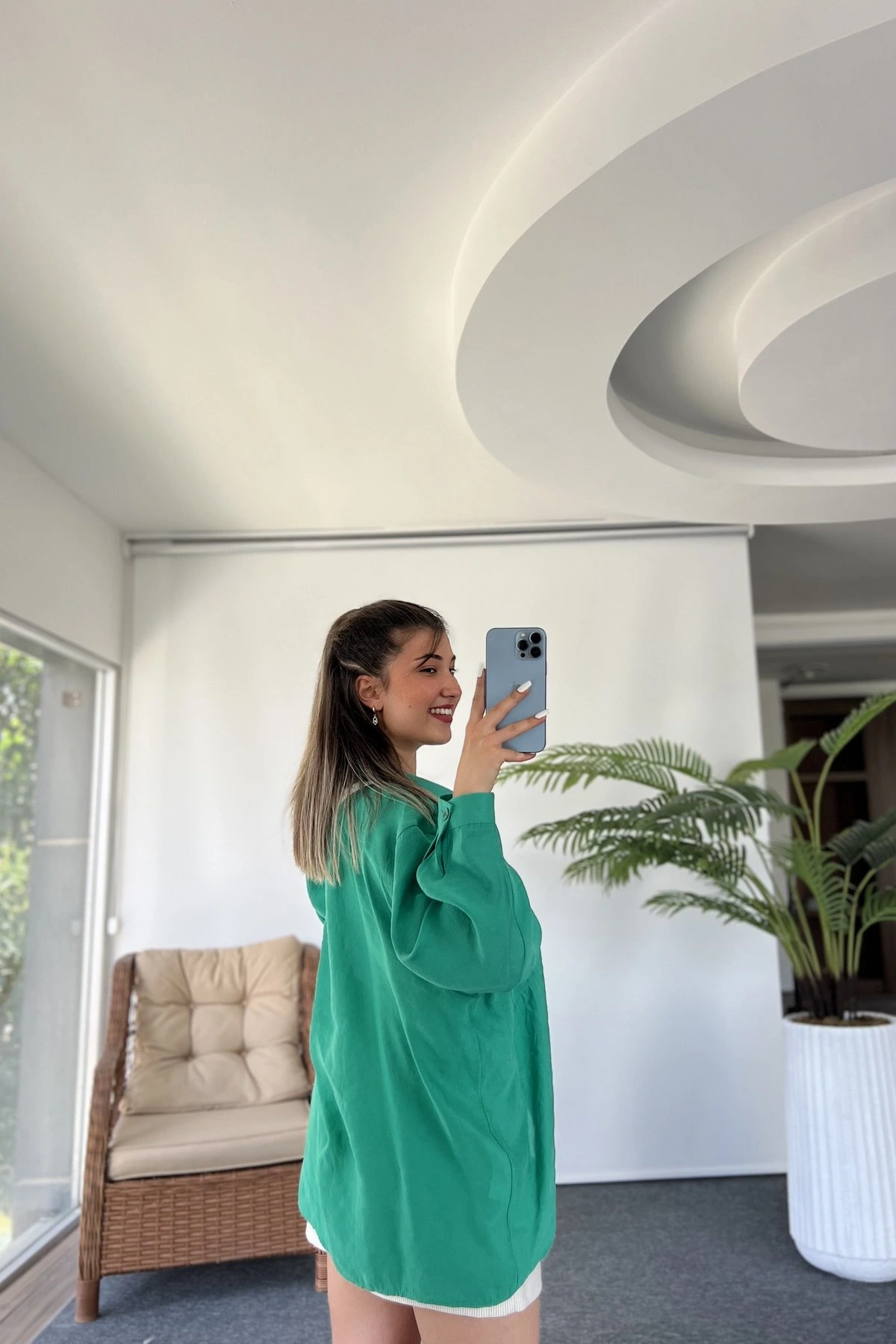 ARKA A PİLE DÜŞÜK OMUZ TEK CEP MODAL GÖMLEK – YEŞİL