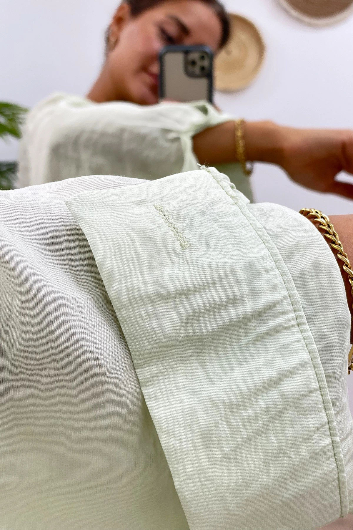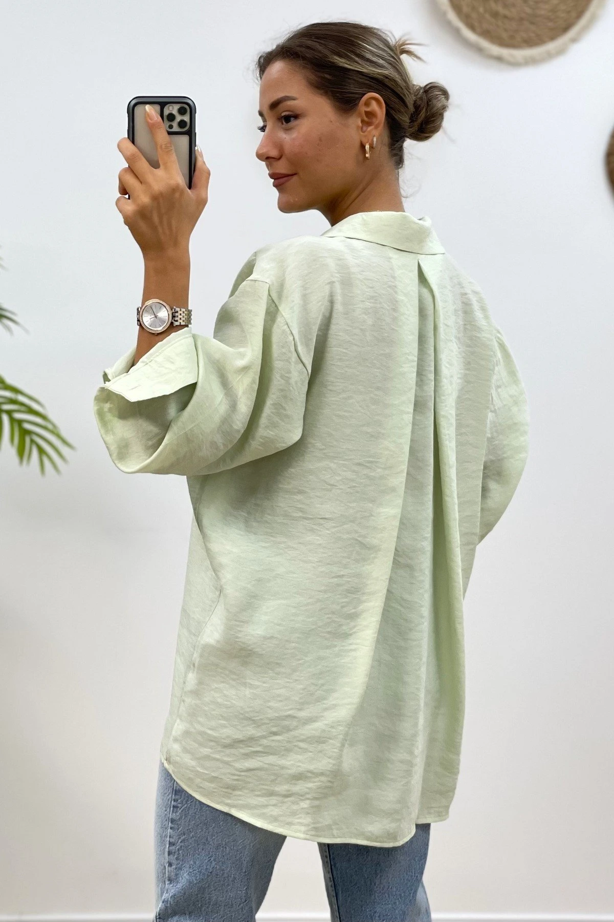 ARKA A PİLE V YAKA CEPLİ MODAL GÖMLEK – MİNT YEŞİLİ