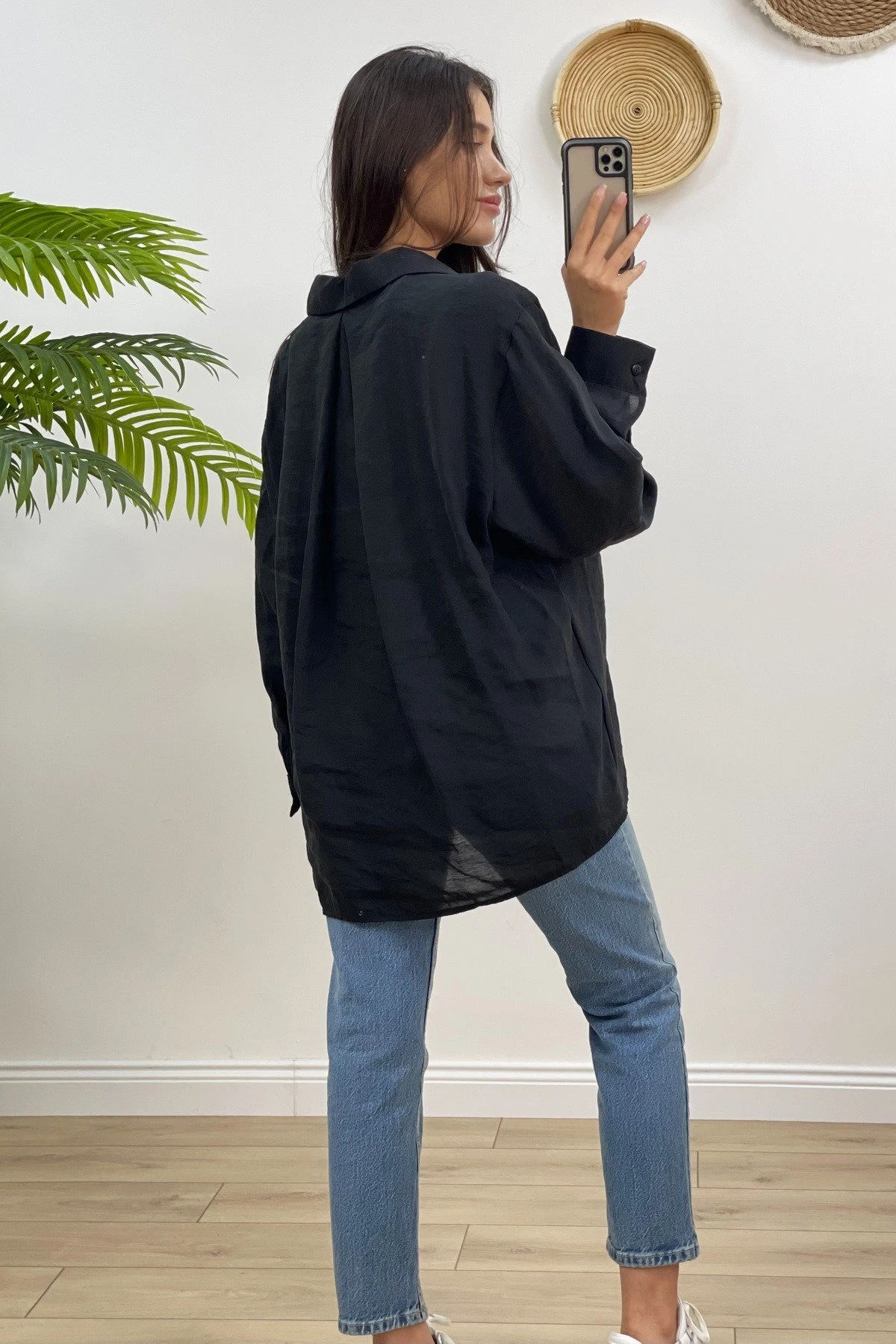 ARKA A PİLE V YAKA CEPLİ MODAL GÖMLEK – SİYAH