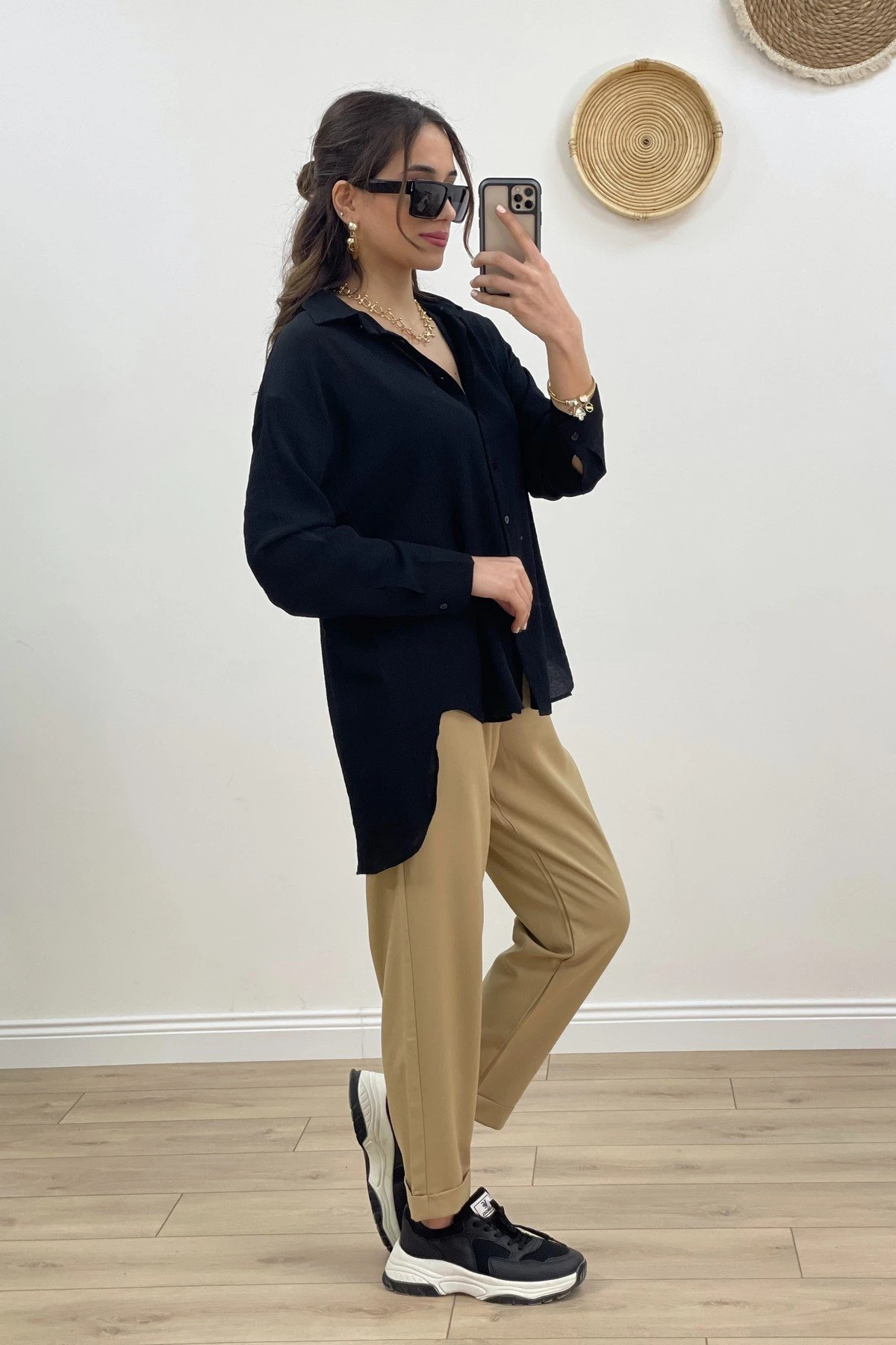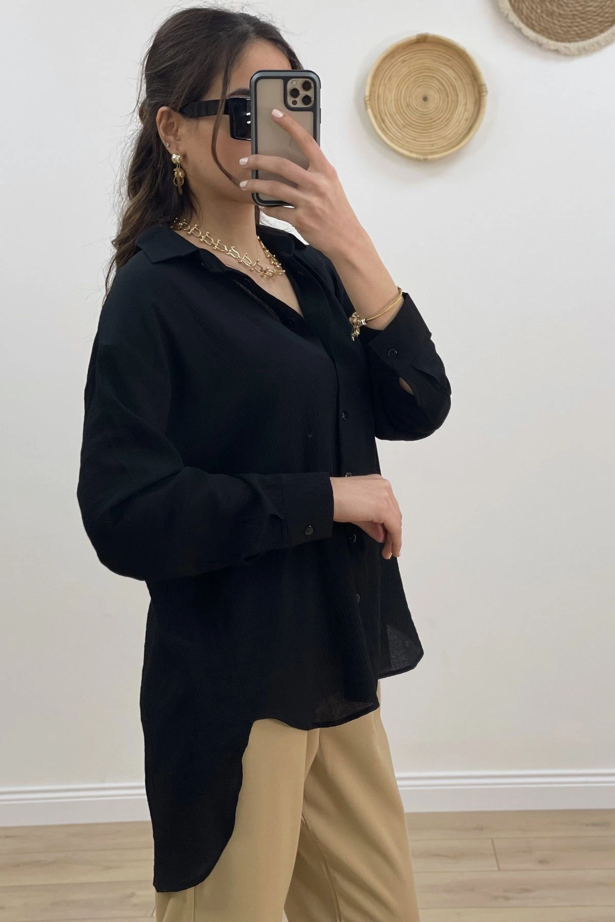 ARKA UZUN GOFRE GÖMLEK – SİYAH