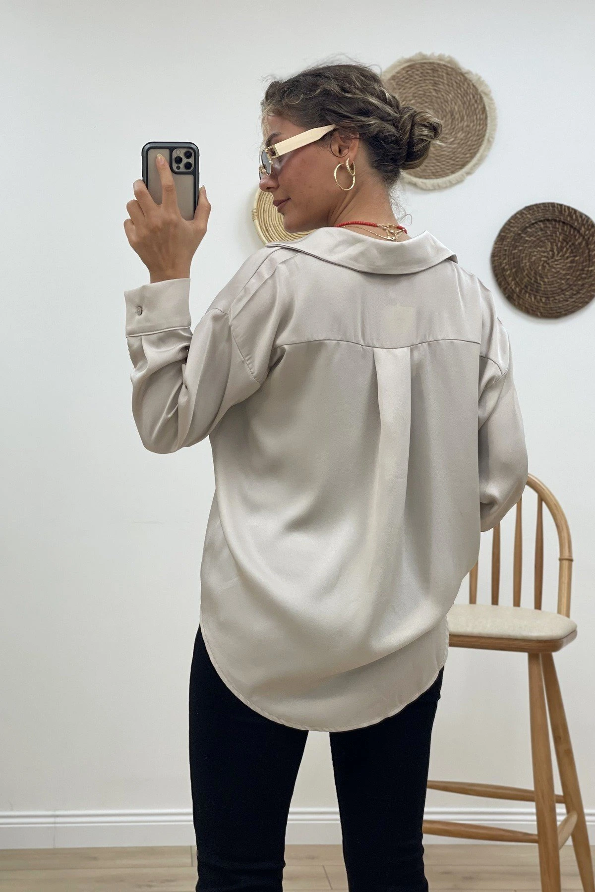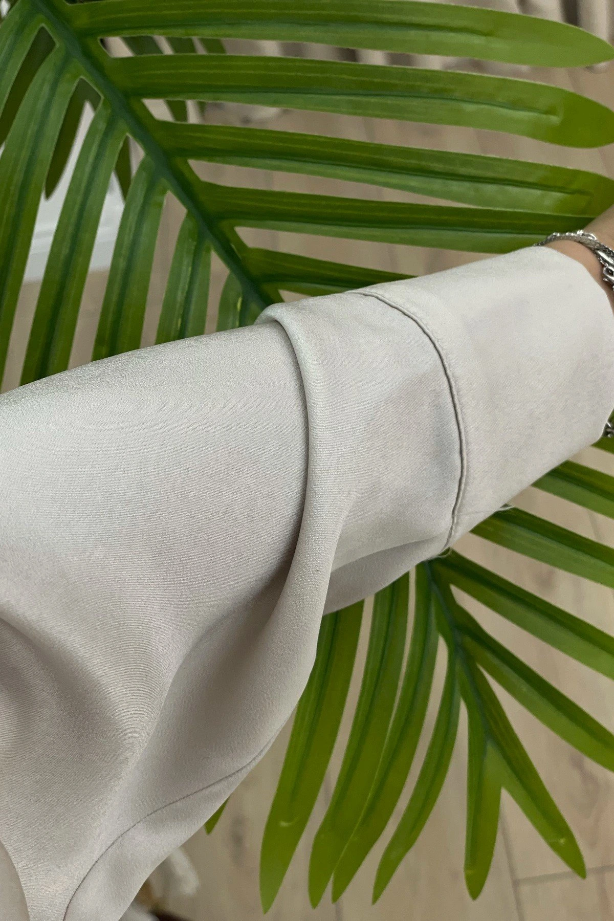 ARKA UZUN SATEN GÖMLEK – BEJ