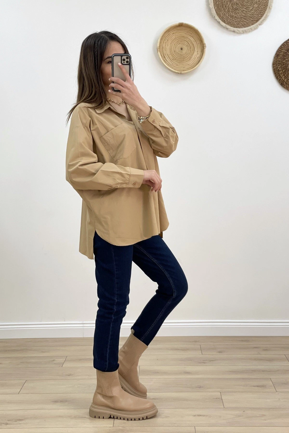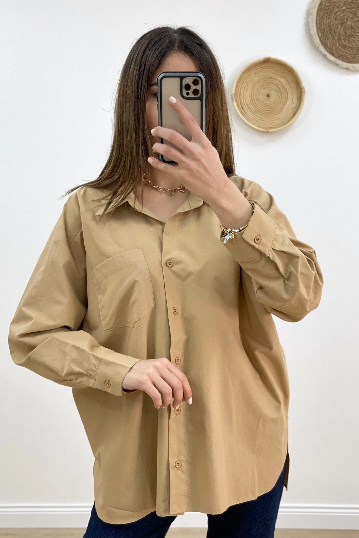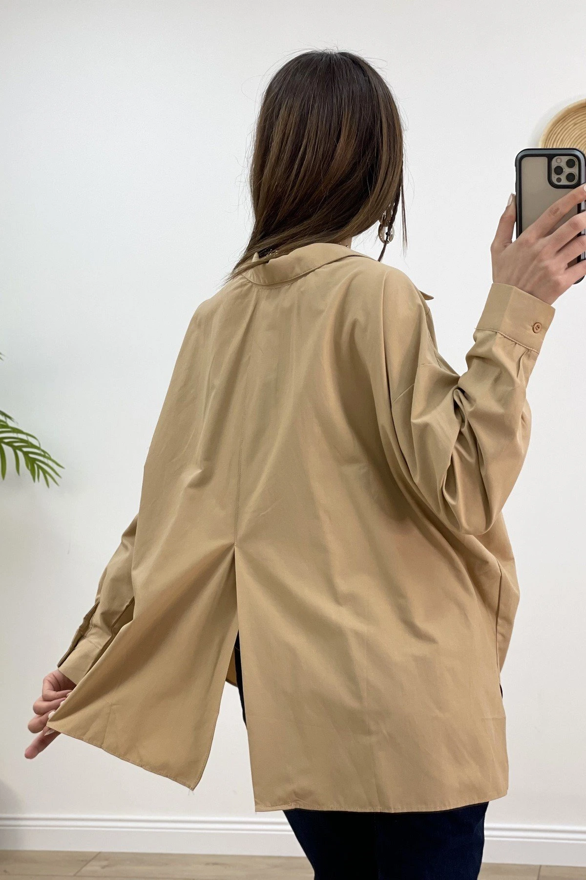 ARKA YIRTMAÇ TEK CEP SALAŞ GÖMLEK – CAMEL