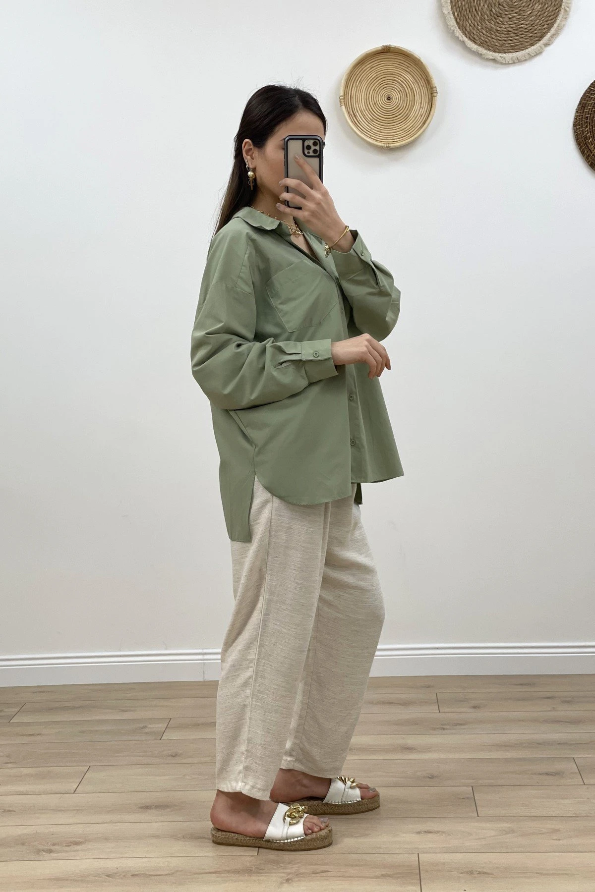 ARKA A PİLE PAMUK GÖMLEK - EKRU