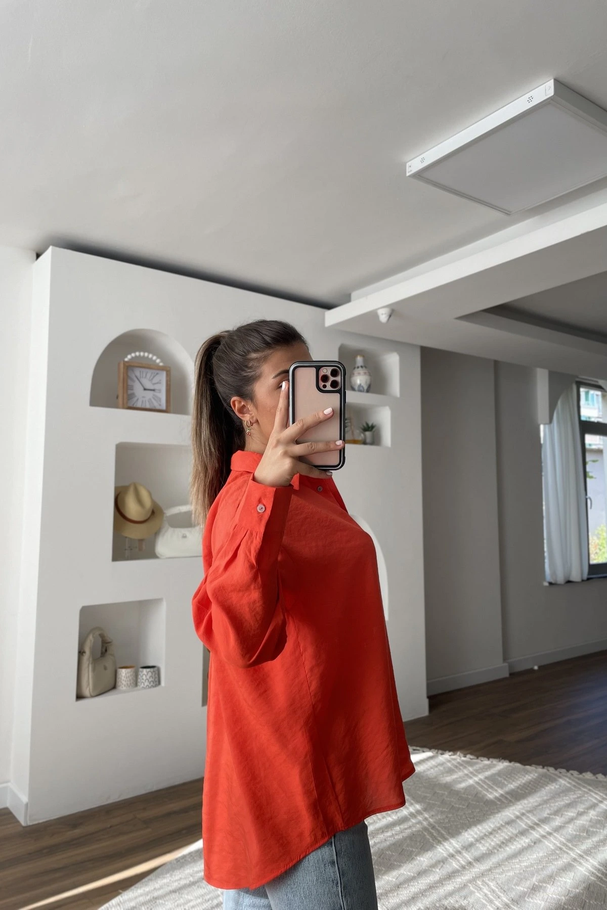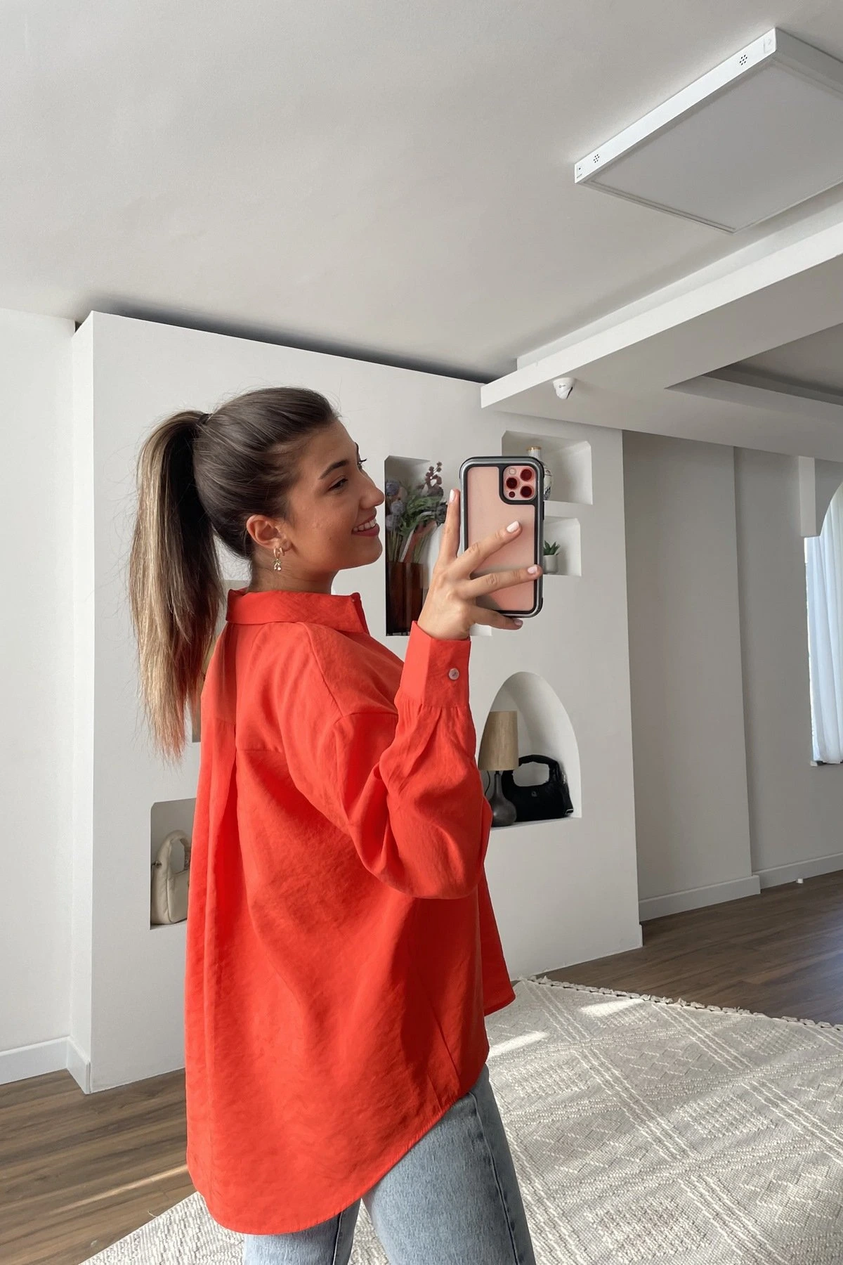 BASİC MODAL ARKA UZUN GÖMLEK – ORANGE