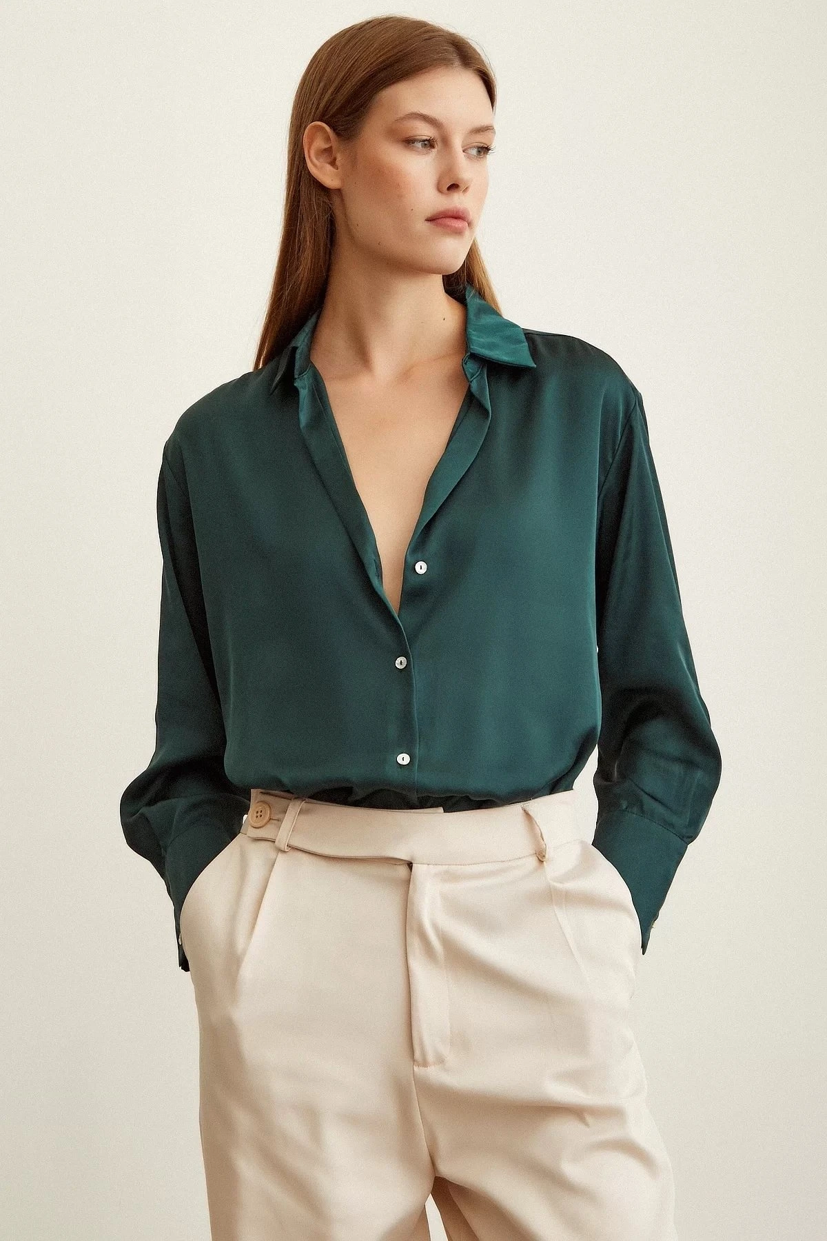 BASİC SATEN GÖMLEK – KOYU YEŞİL