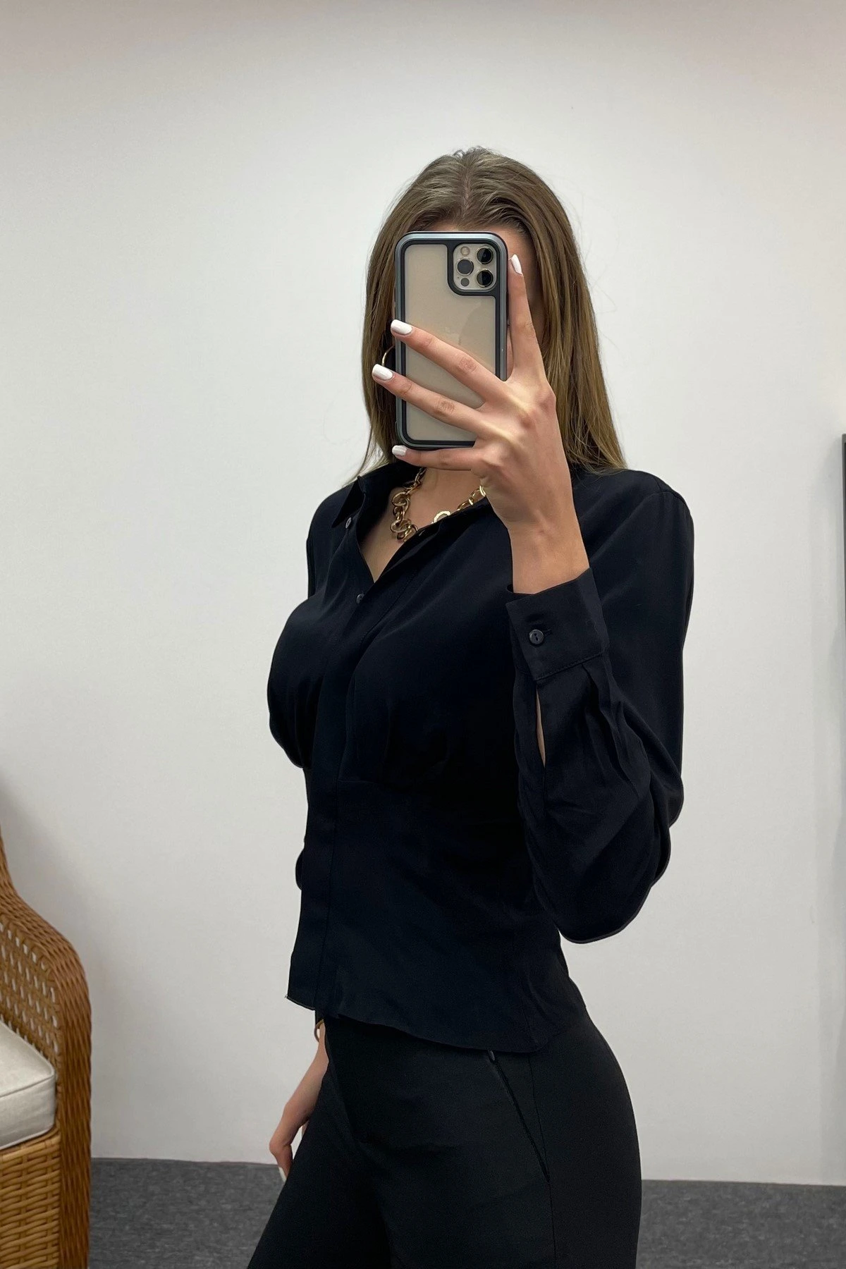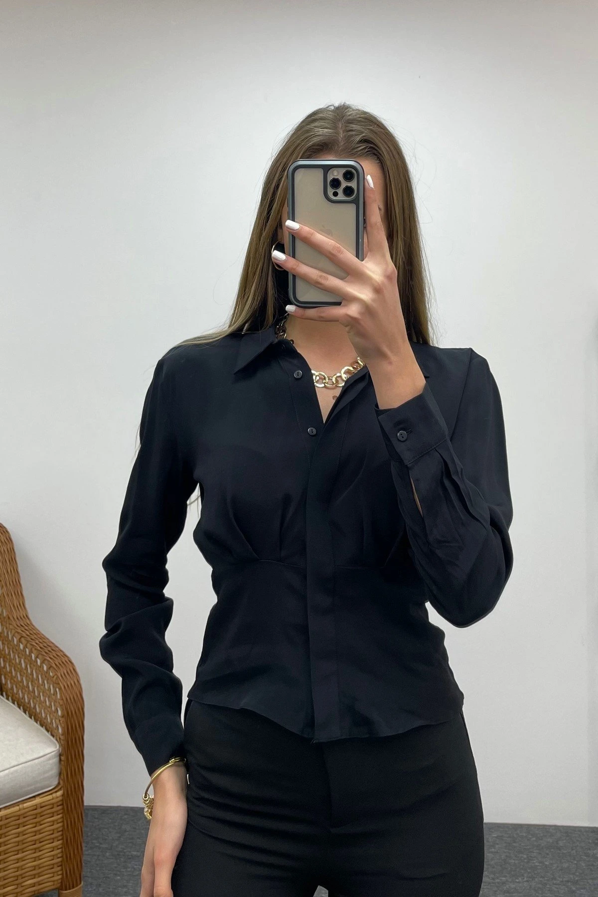 BEL DRAPE VİSKON GÖMLEK – SİYAH