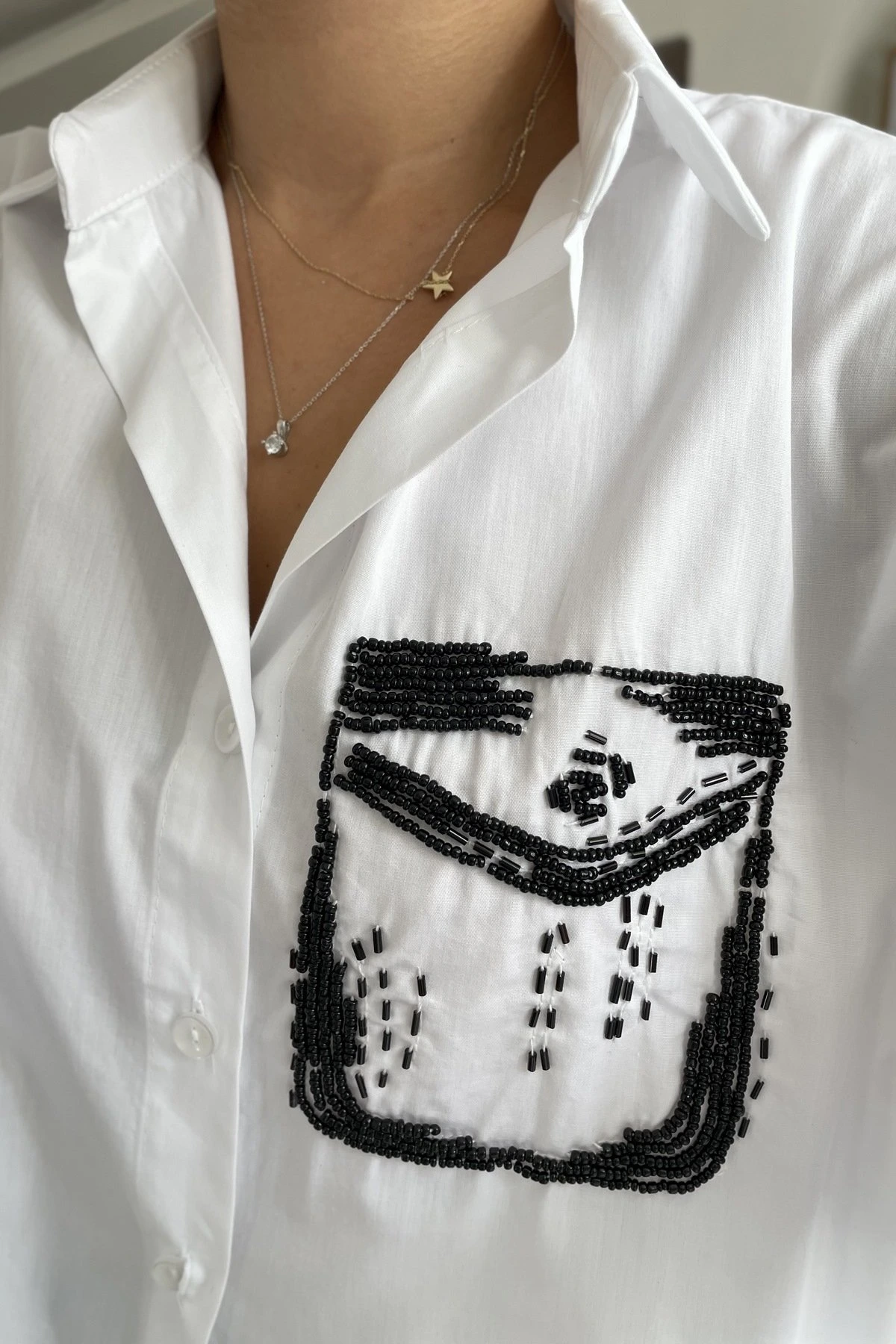 CEP BONCUK DETAY PAMUK KARIŞIMLI GÖMLEK – BEYAZ