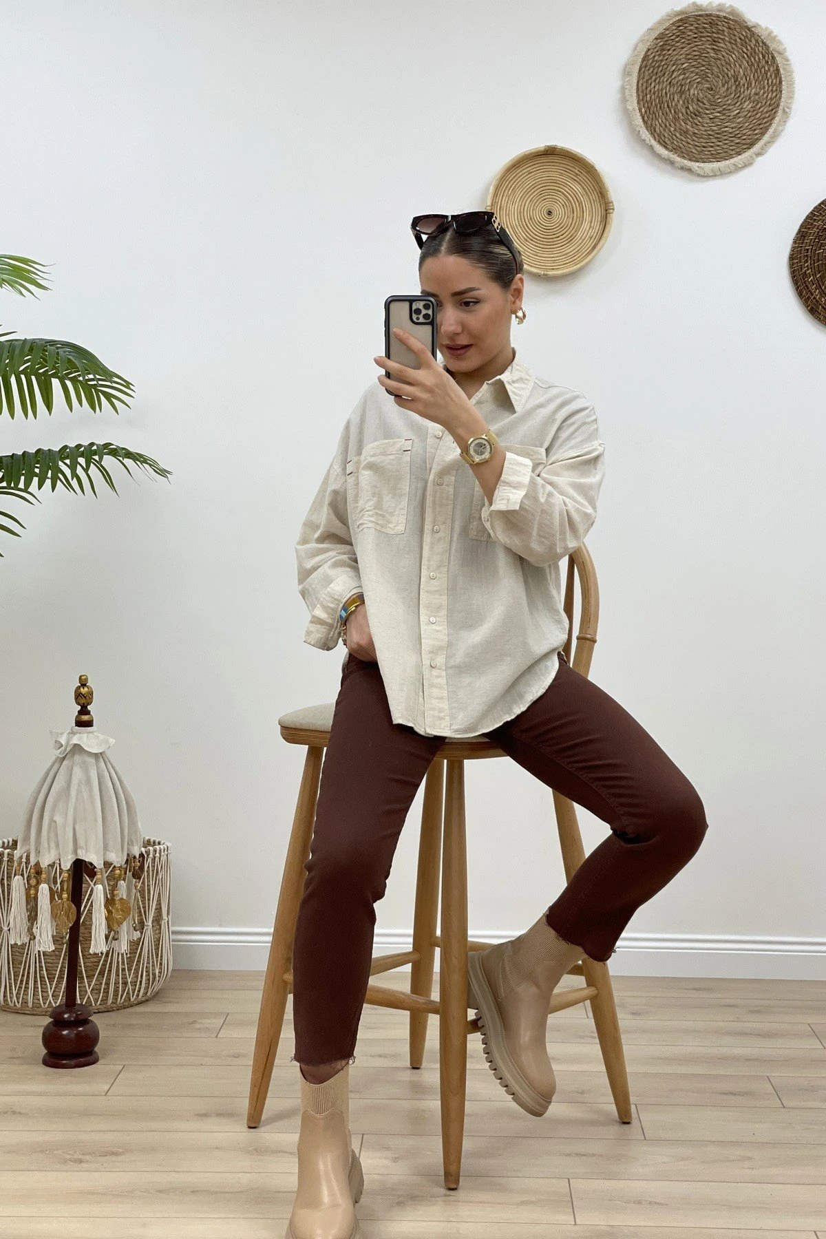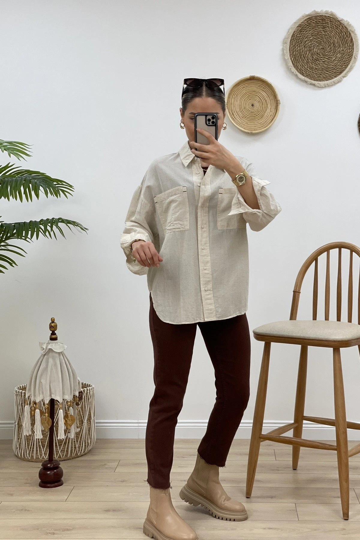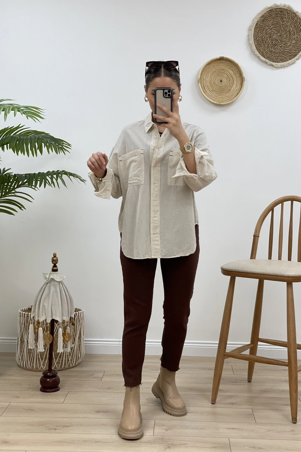 CEPLİ KETEN GÖMLEK – NATUREL