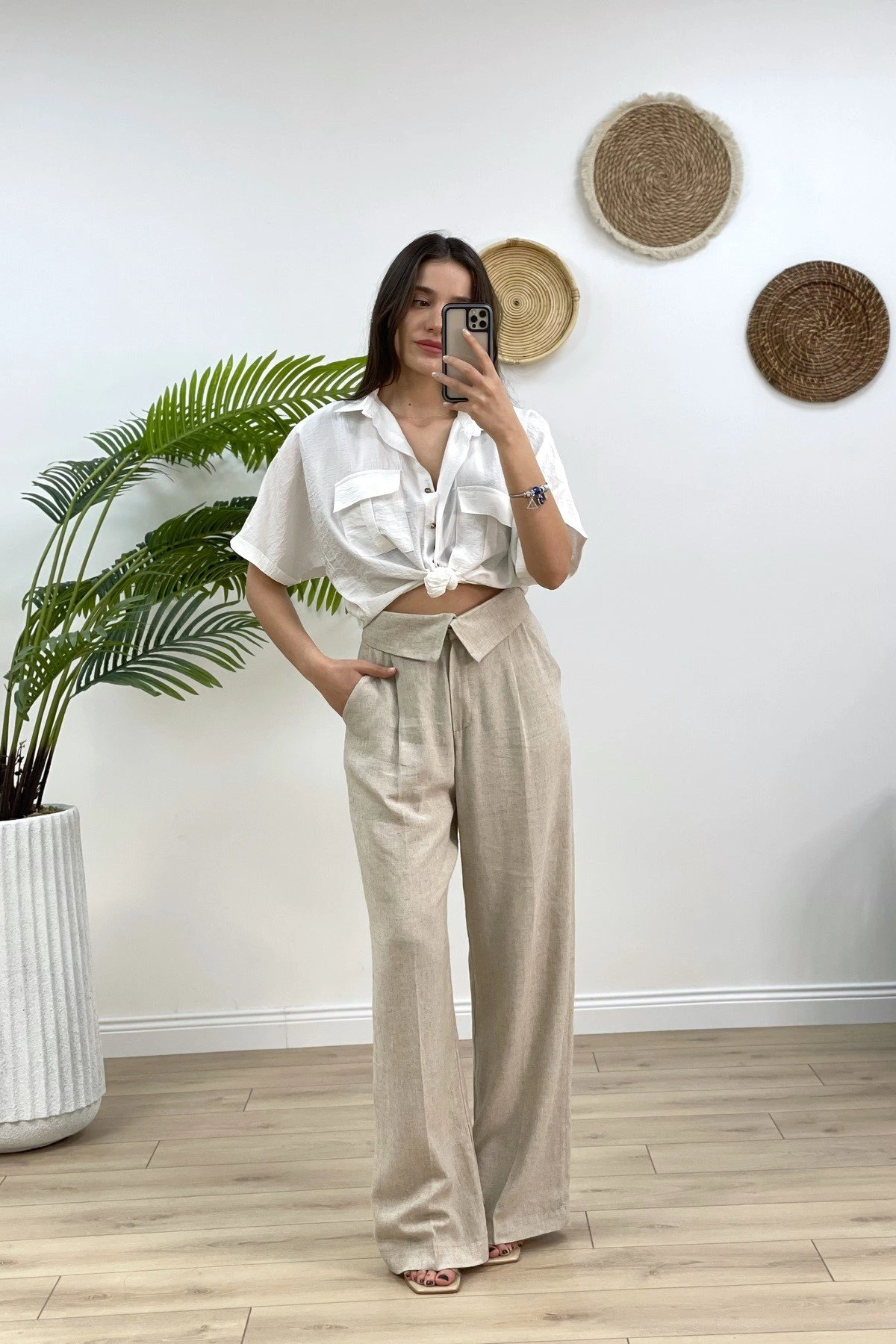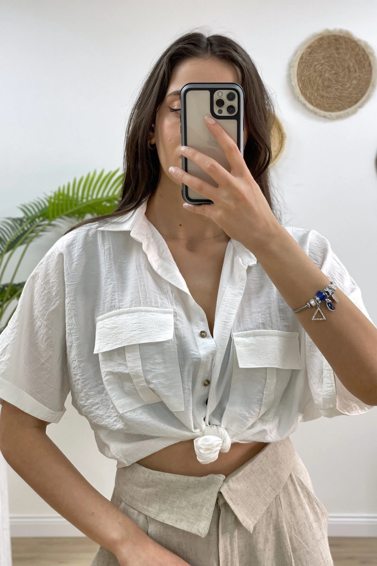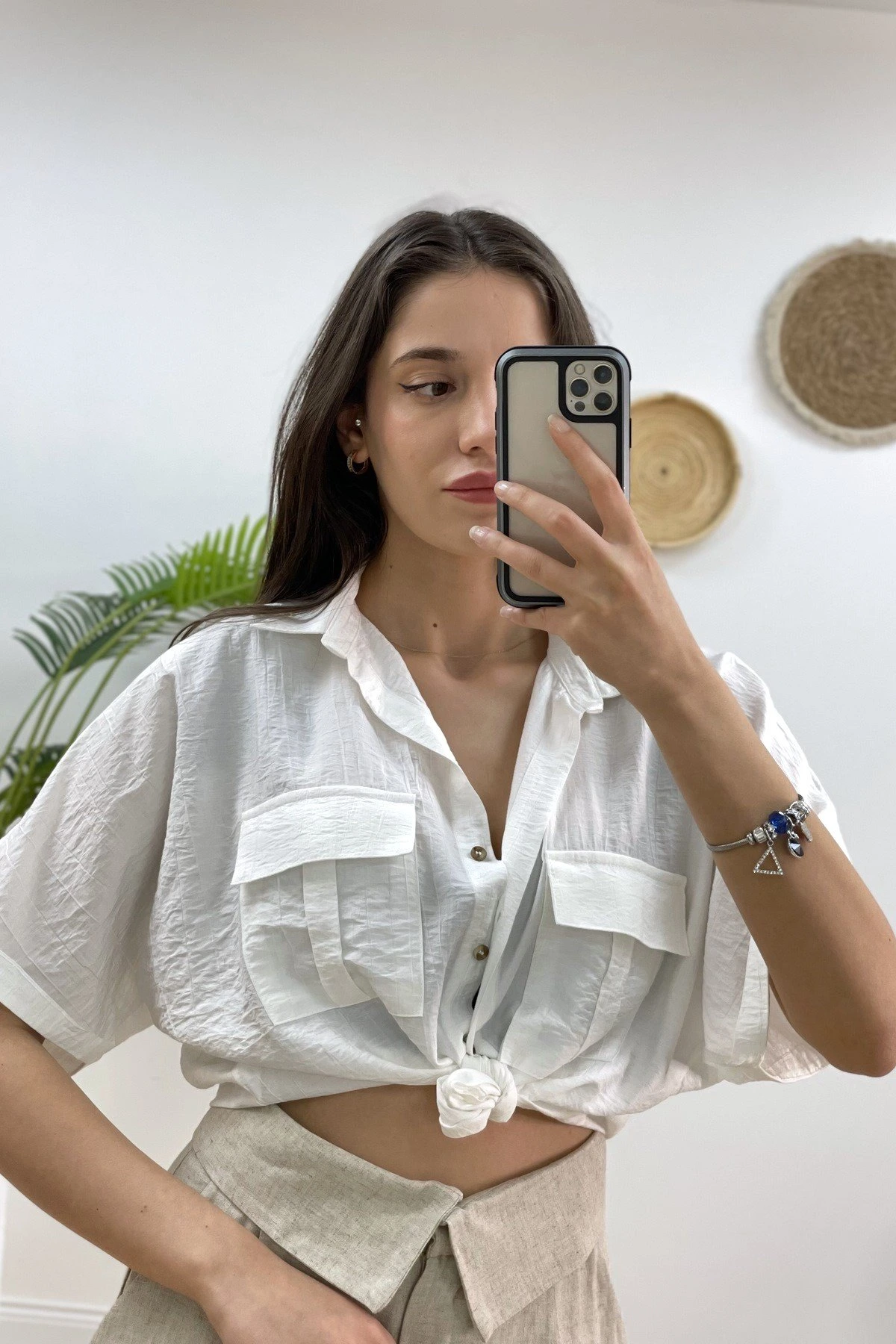 ÇİFT KAPAK CEP ÖN BAĞLAMALI GÖMLEK – EKRU