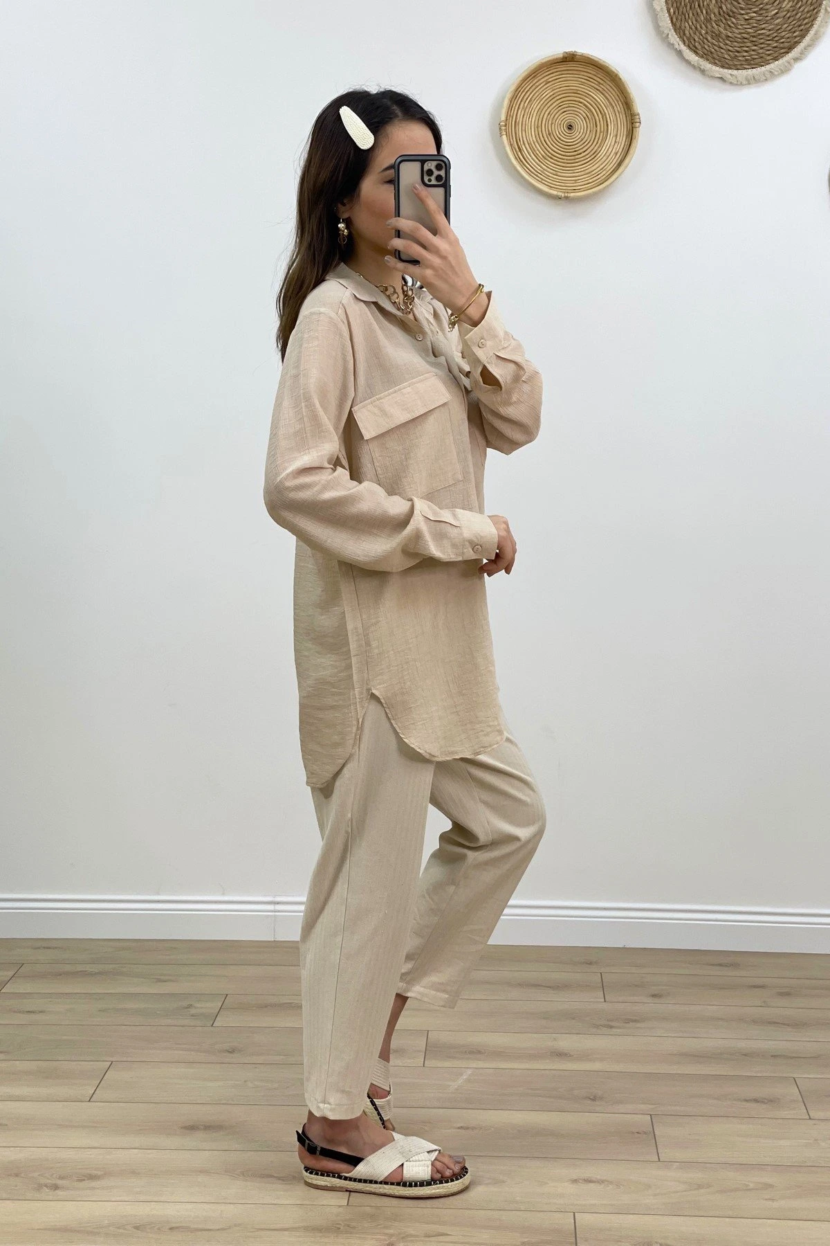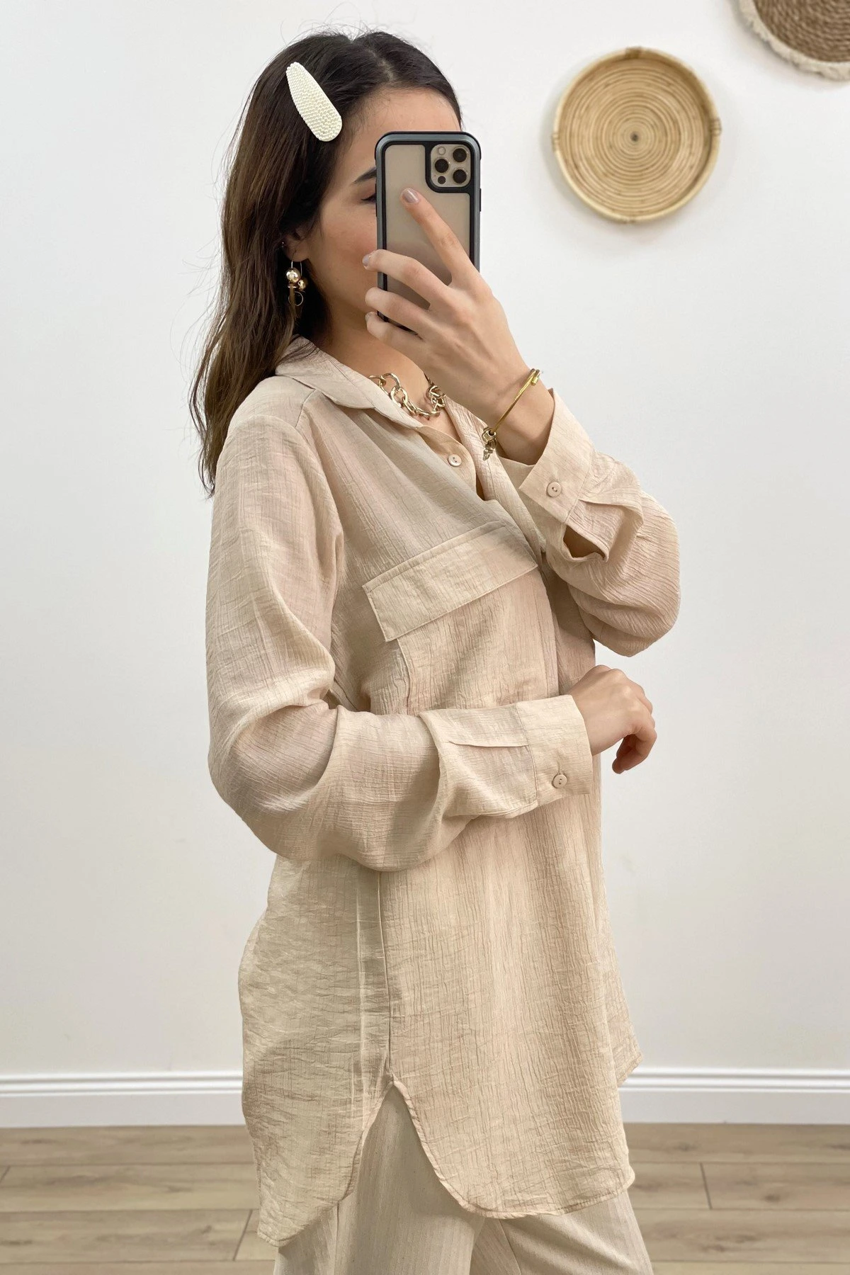 ÇİFT KAPAK CEP VİSKON GÖMLEK – TAŞ