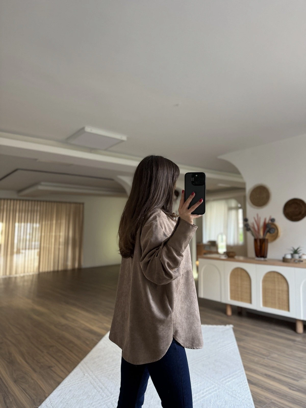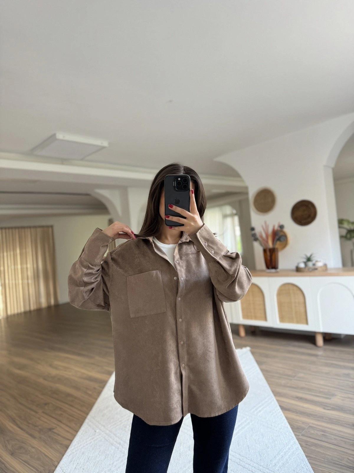 ÇITÇITLI TEK CEP OVERSİZE SÜET GÖMLEK – VİZON
