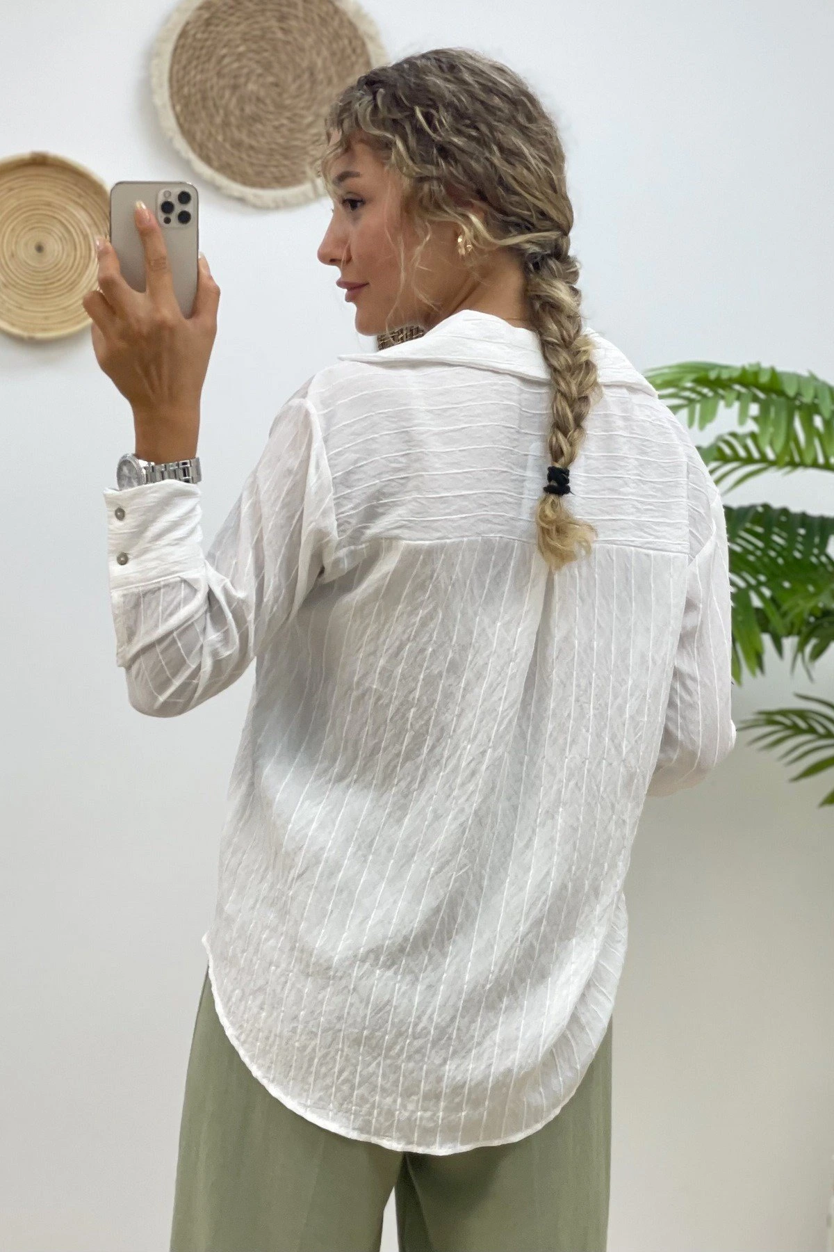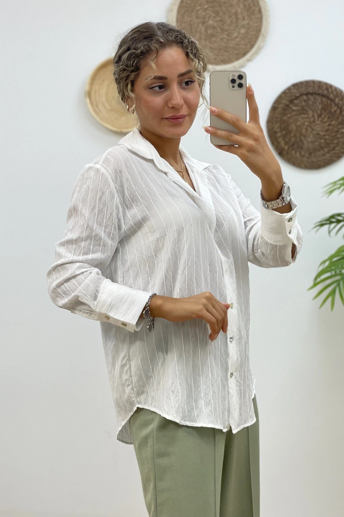 ÇİZGİ DOKULU PAMUK VİSKON GÖMLEK – BEYAZ