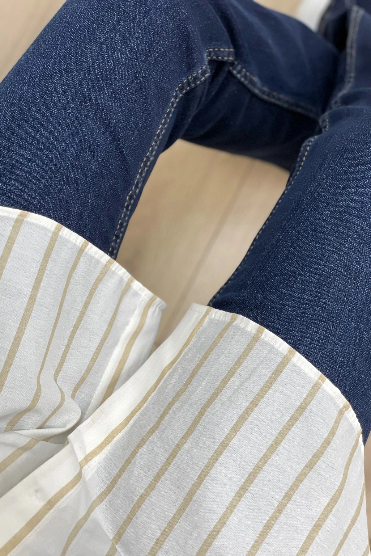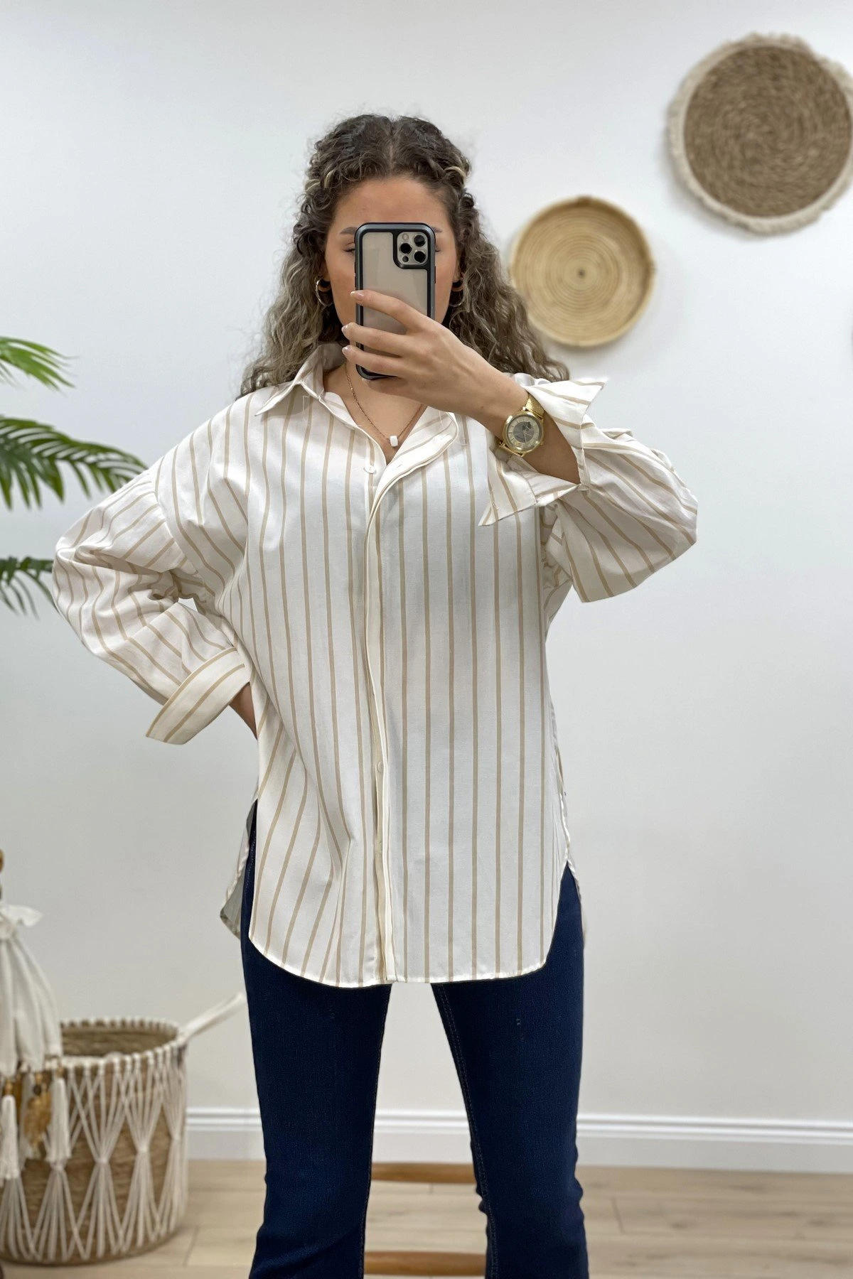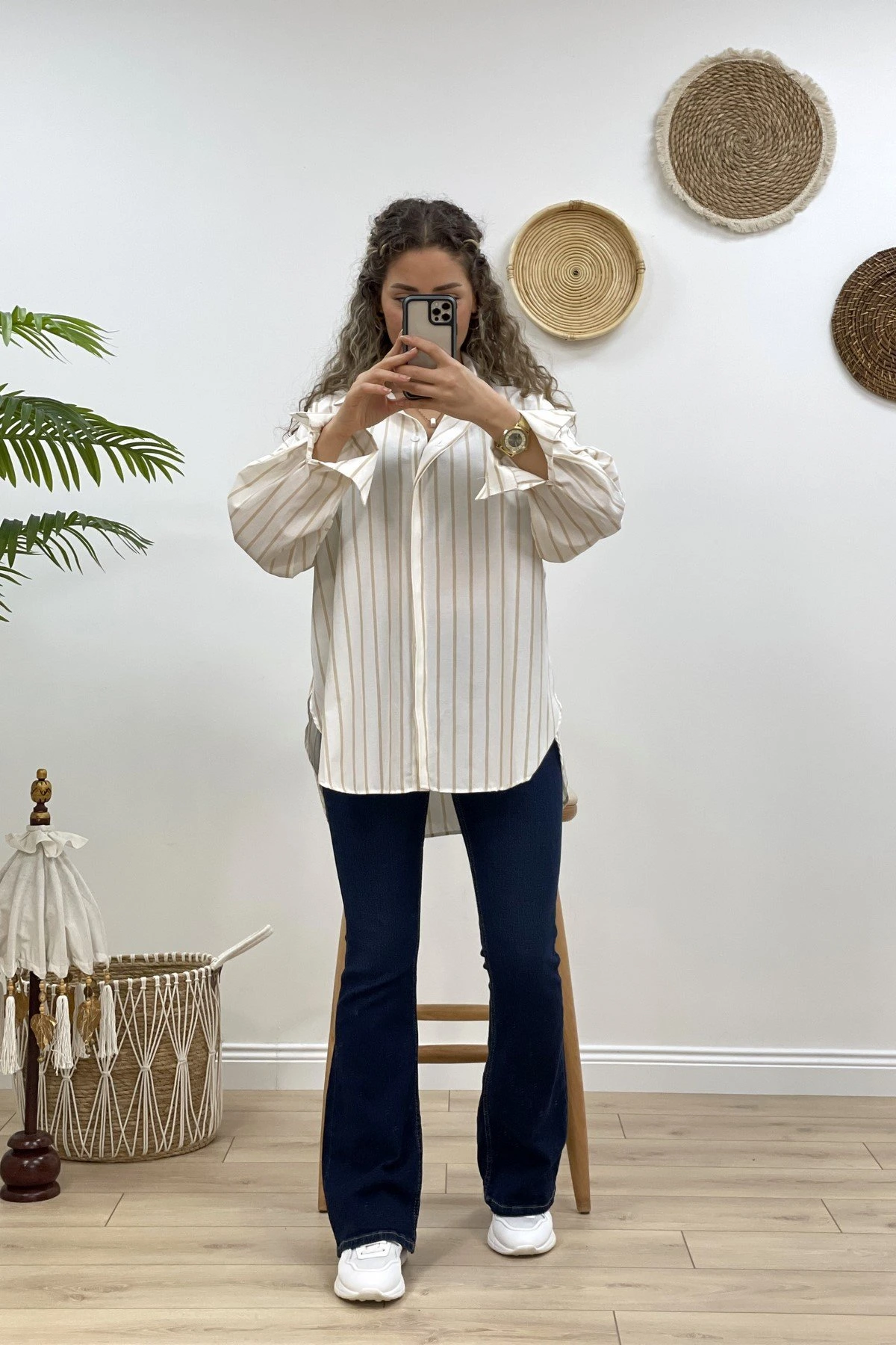 ÇİZGİLİ ETEĞİ OVAL SALAŞ GÖMLEK – TAŞ