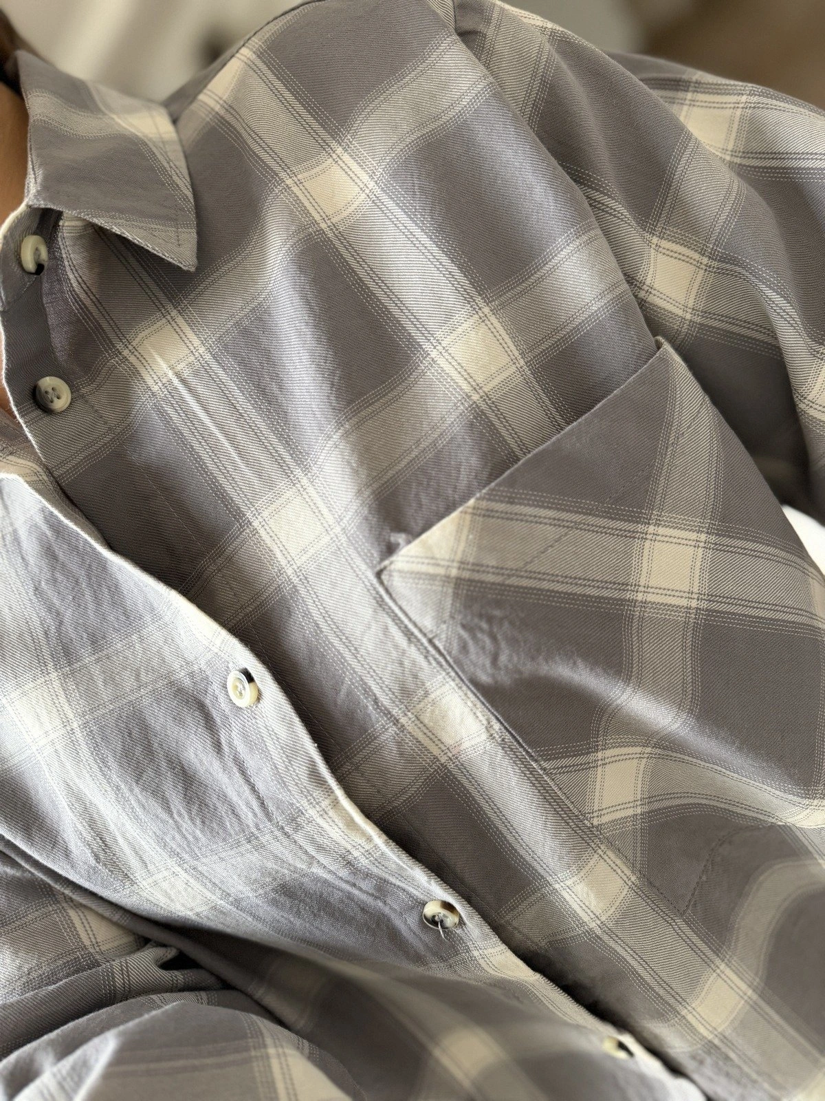 ÇİZGİLİ TEK CEP KEMİK DÜĞME PAMUK GÖMLEK – GRİ