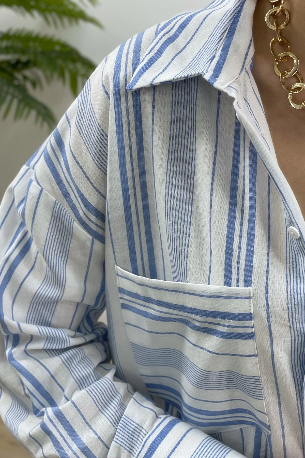 ÇİZGİLİ TEK CEP PAMUK GÖMLEK – MAVİ BEYAZ