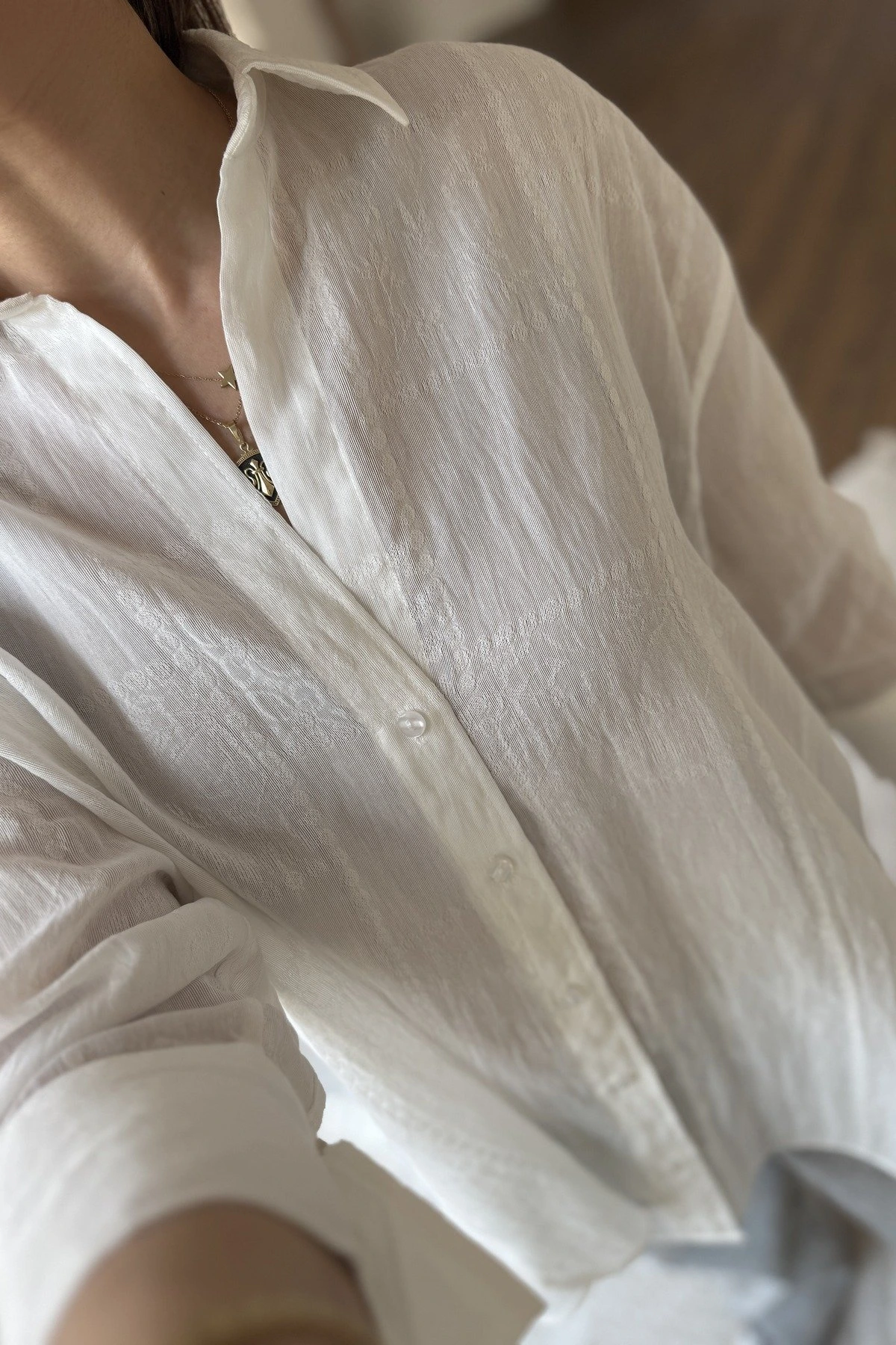 DESEN DOKU TRUVAKAR KOL VİSKON PAMUK GÖMLEK – EKRU