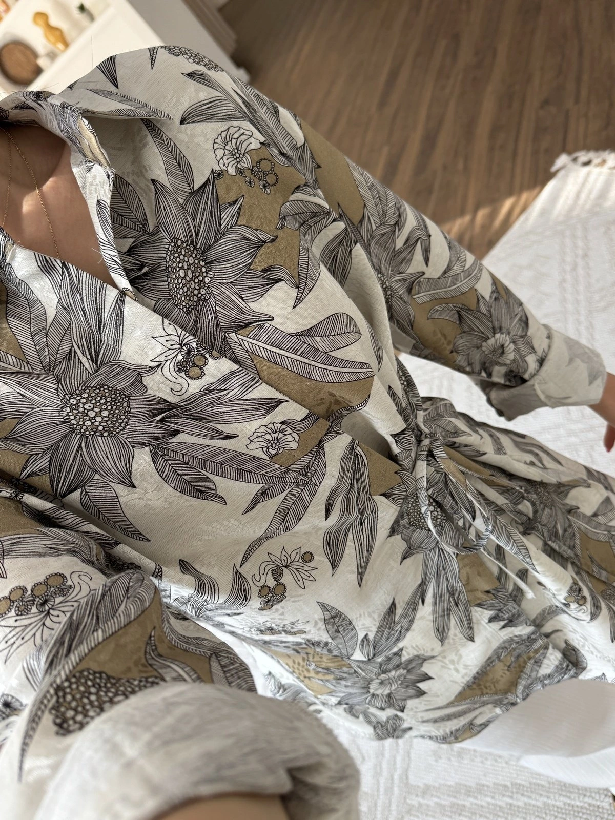 DESENLİ BEL İP DETAY İPEK VİSKON KETEN GÖMLEK – EKRU HAKİ