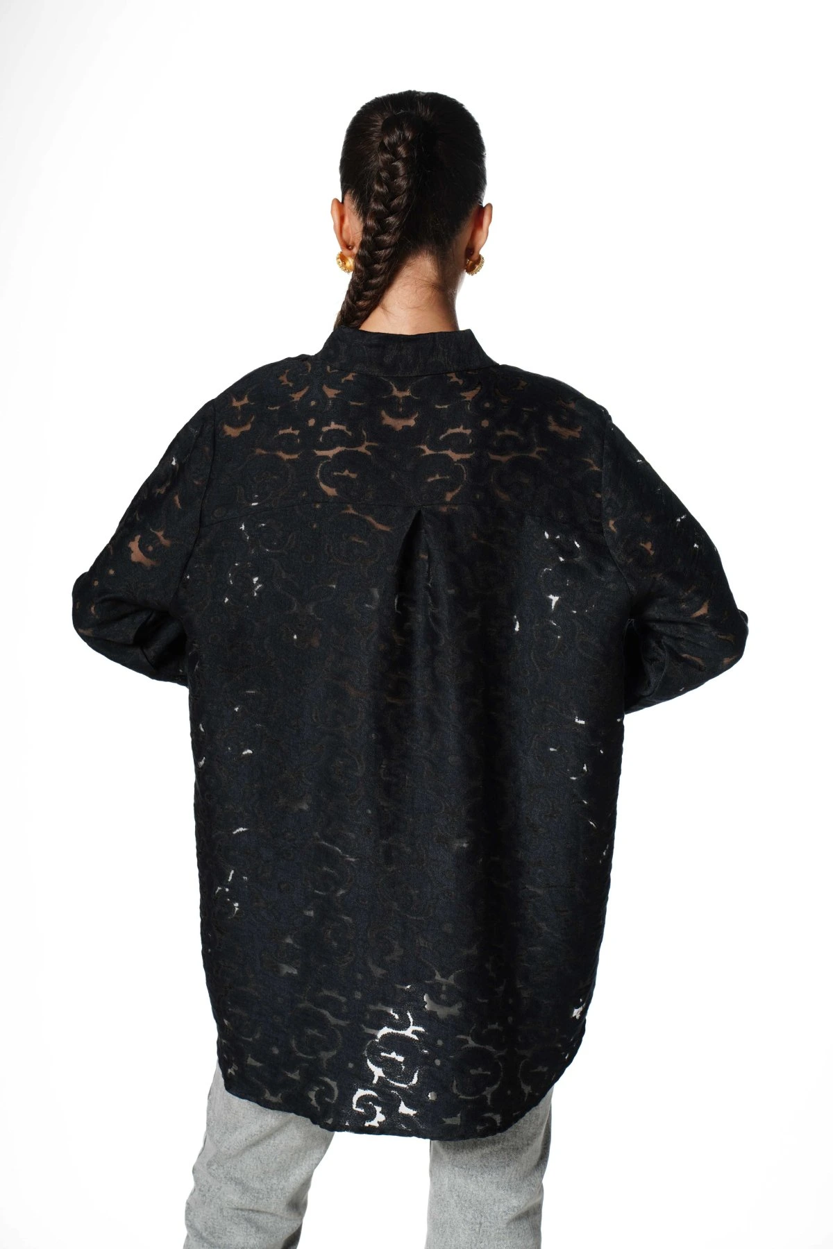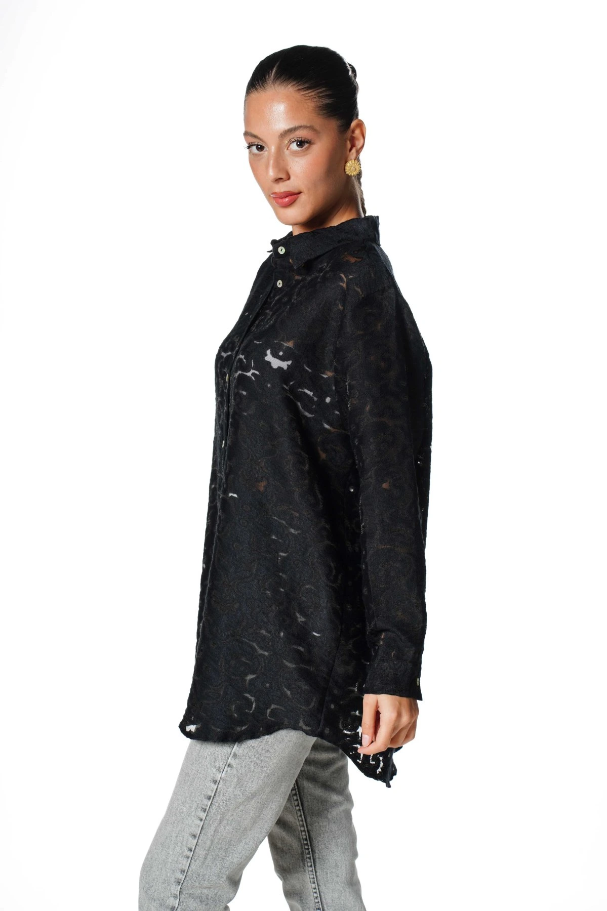 DESENLİ GÜPÜR VİSKON SALAŞ GÖMLEK – SİYAH