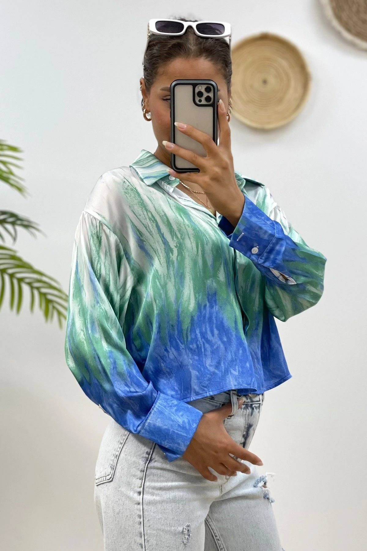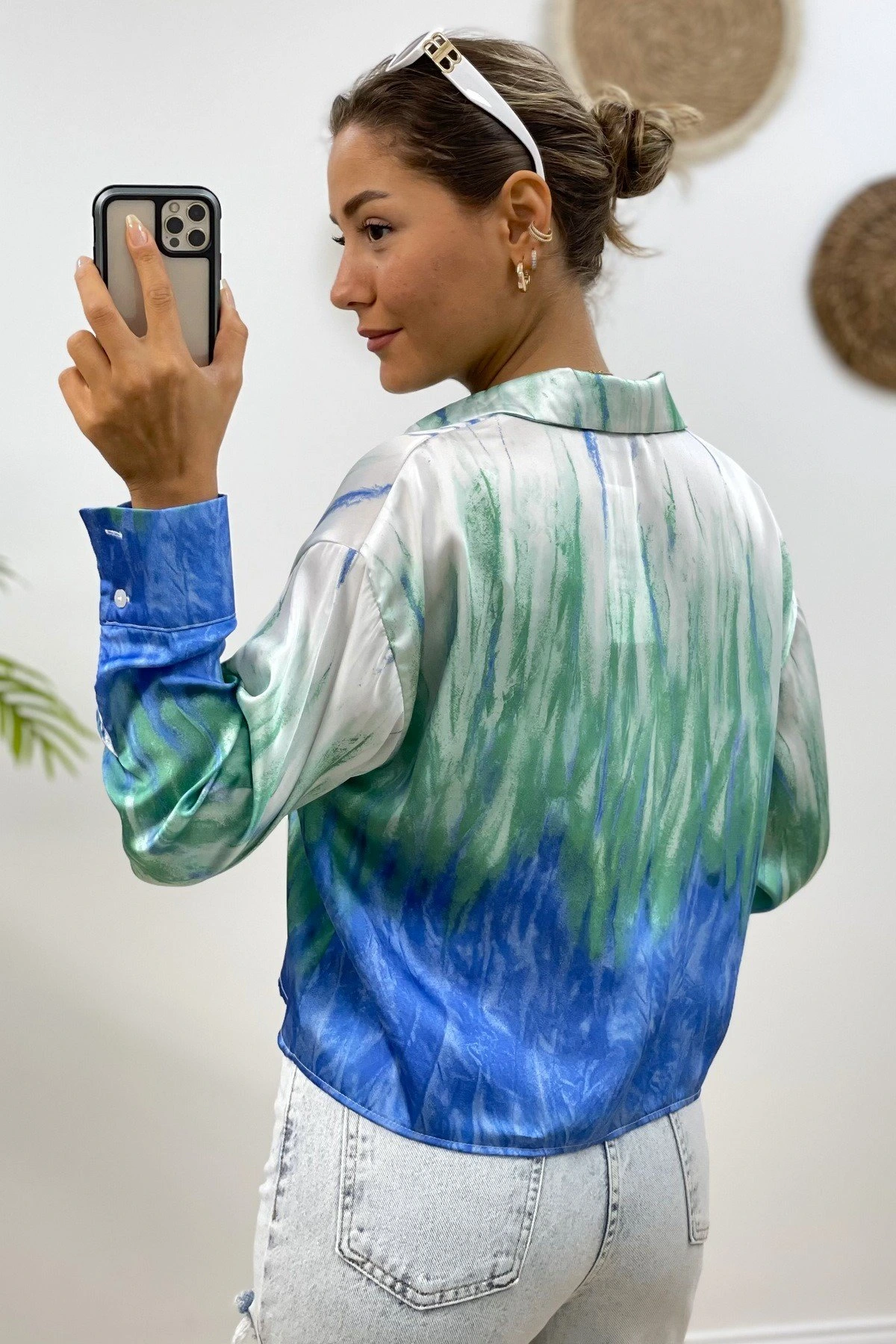 DESENLİ KISA SATEN GÖMLEK – MAVİ DESENLİ