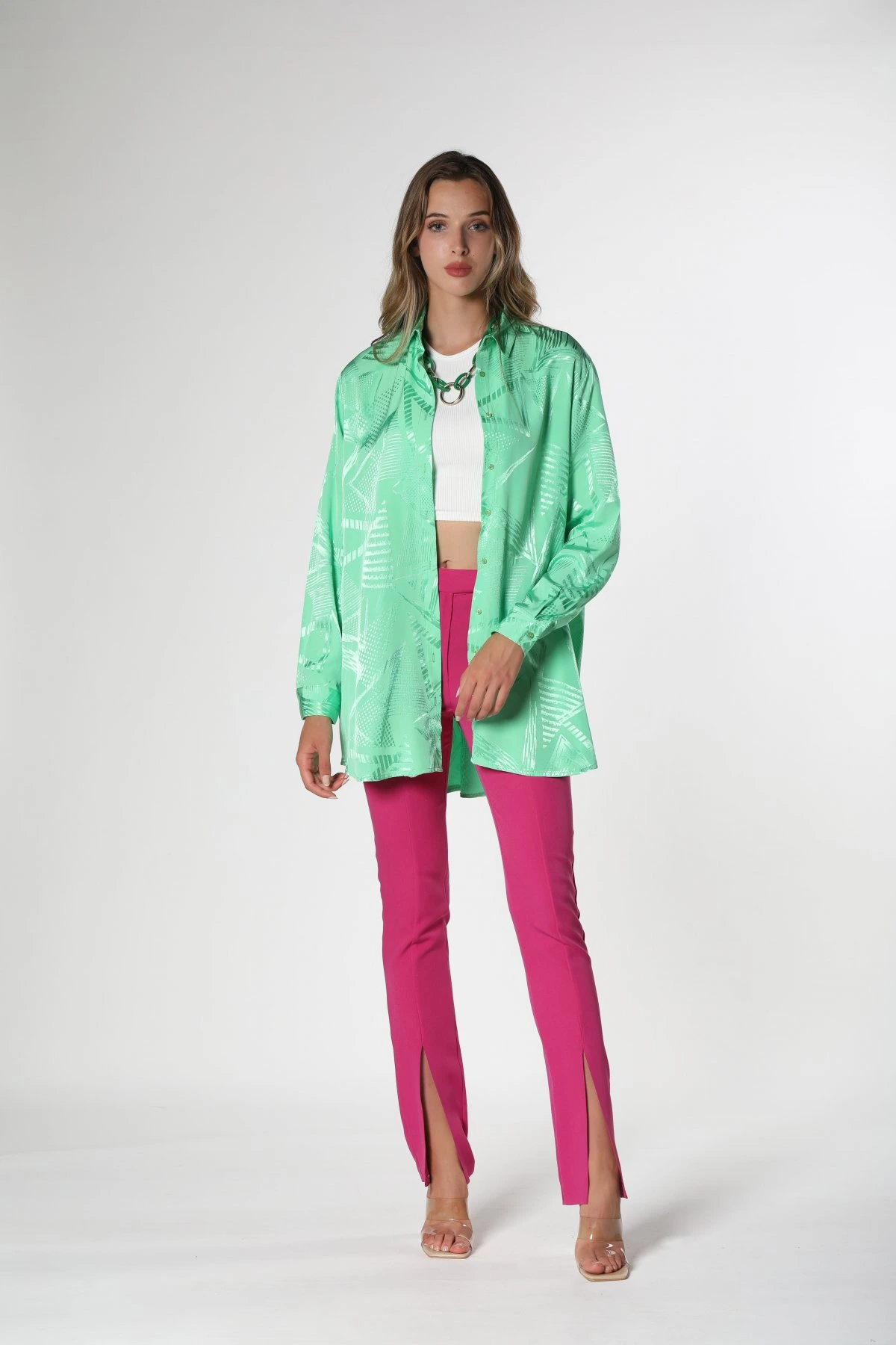 DESENLİ SATEN GÖMLEK – AÇIK YEŞİL
