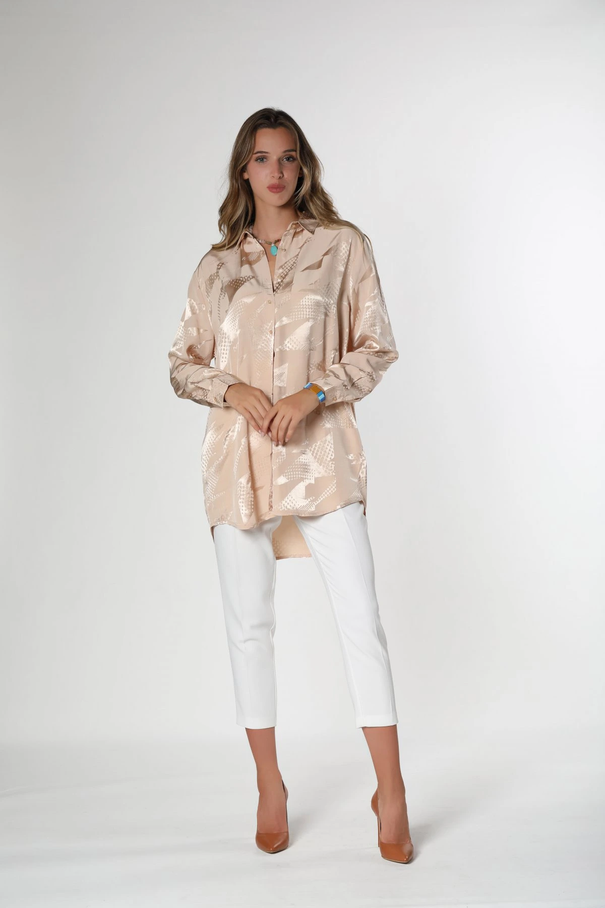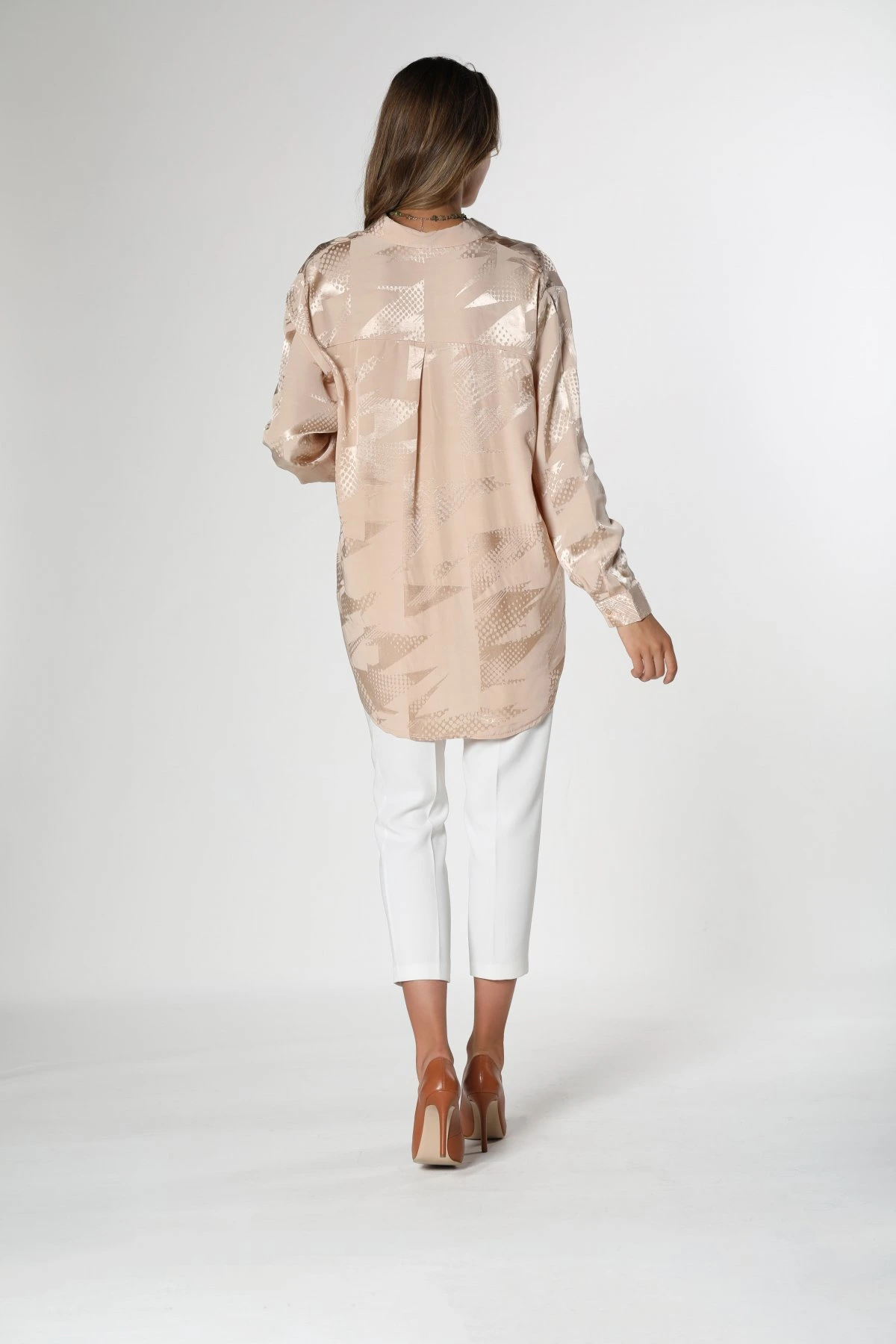 DESENLİ SATEN GÖMLEK – BEJ