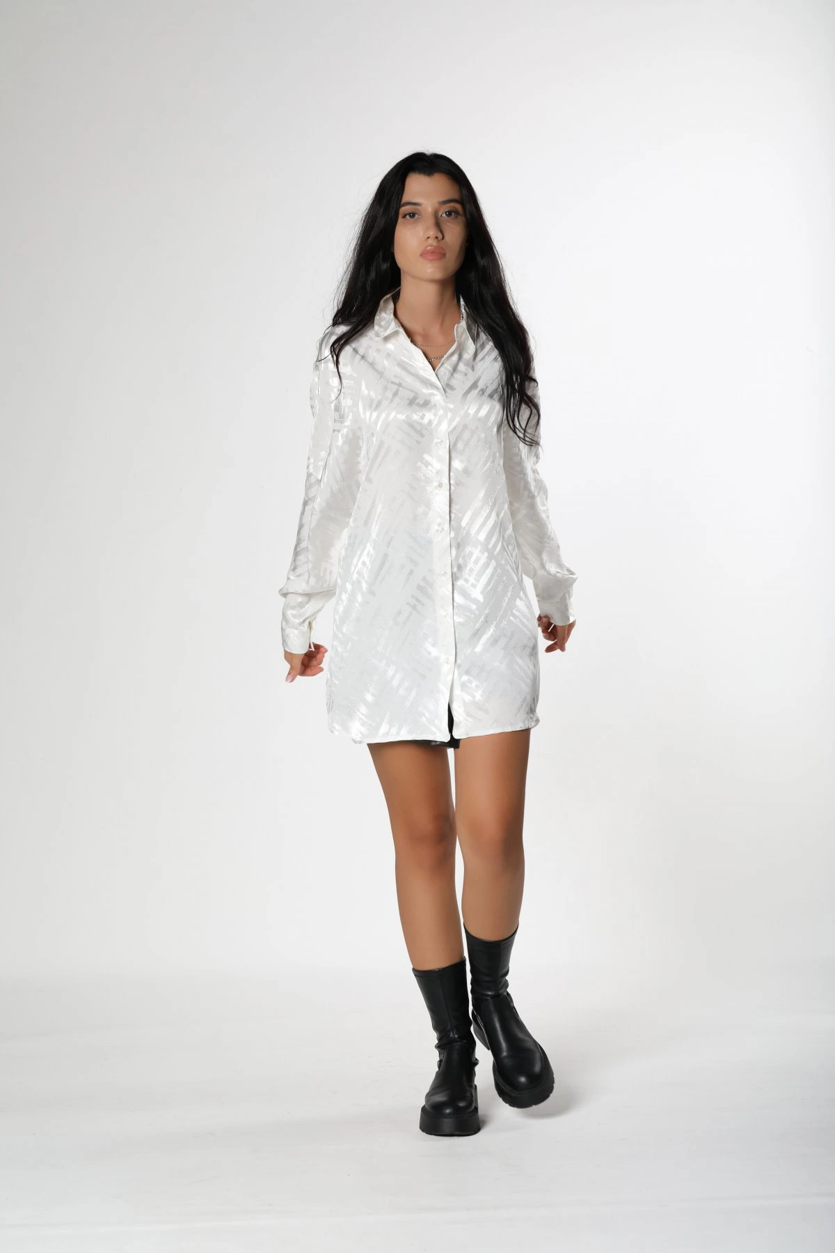 DESENLİ SATEN GÖMLEK – BEYAZ