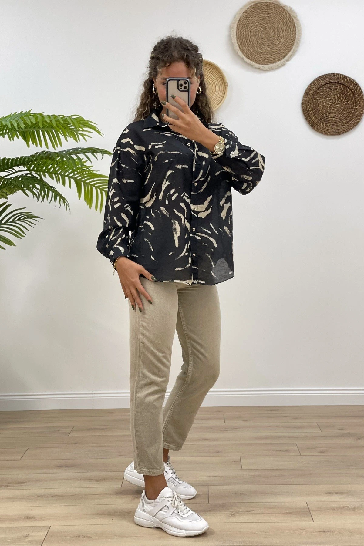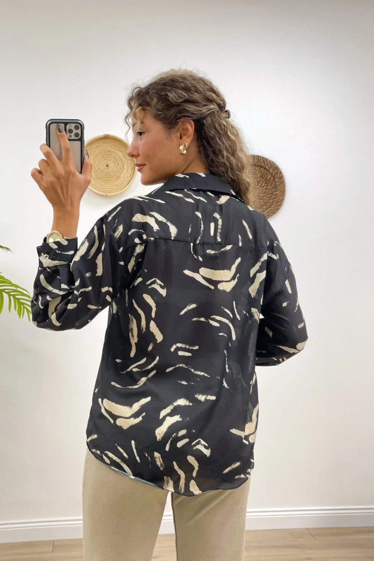 DESENLİ SATEN GÖMLEK – SİYAH