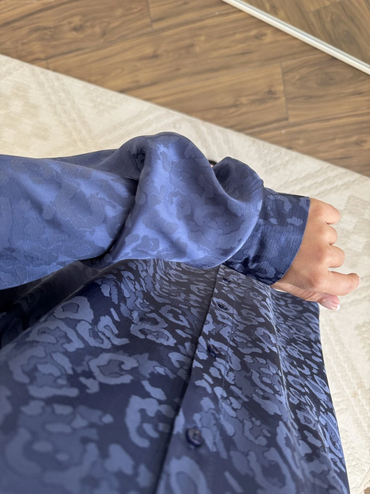 DOKU DESEN JAKARLI VİSKON SALAŞ GÖMLEK – İNDİGO