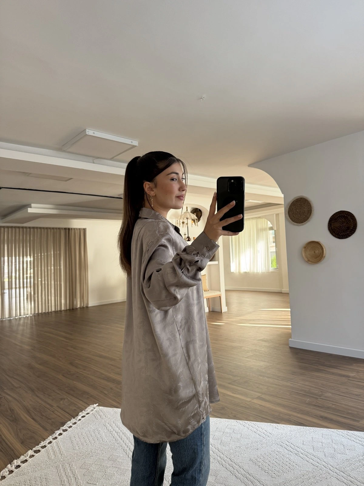 DOKU DESEN JAKARLI VİSKON SALAŞ GÖMLEK – VİZON