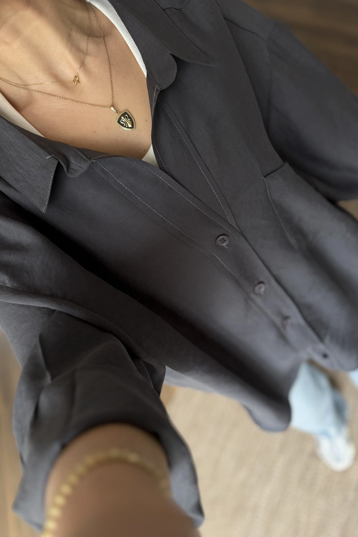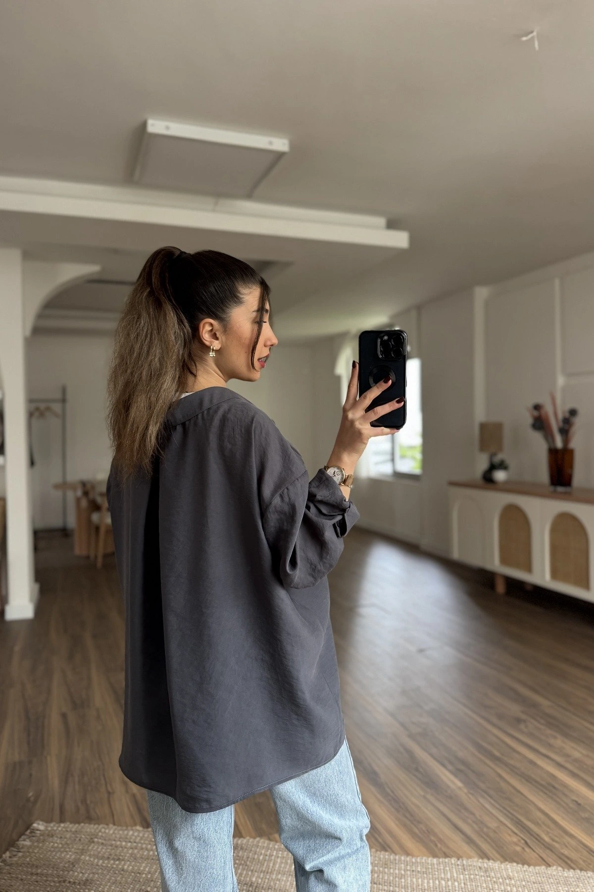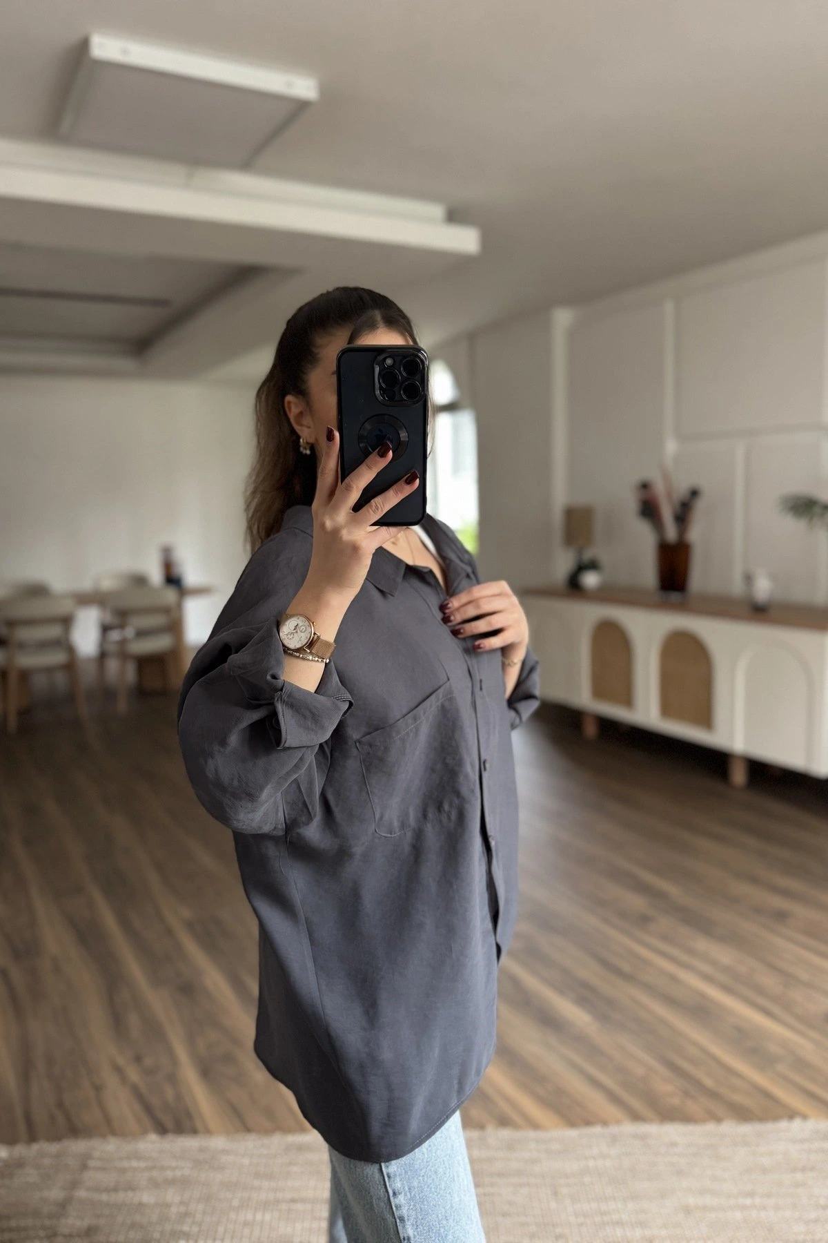 DÜŞÜK OMUZ ARKA A PİLE TEK CEP MODAL SALAŞ GÖMLEK – ANTRASİT