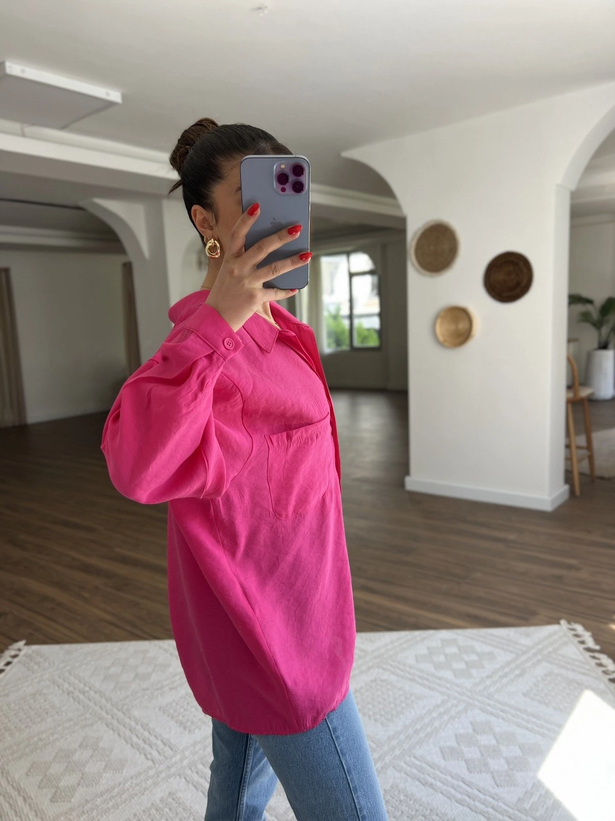 DÜŞÜK OMUZ ARKA A PİLE TEK CEP MODAL SALAŞ GÖMLEK – FUŞYA
