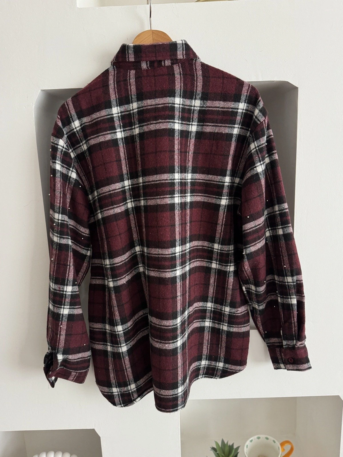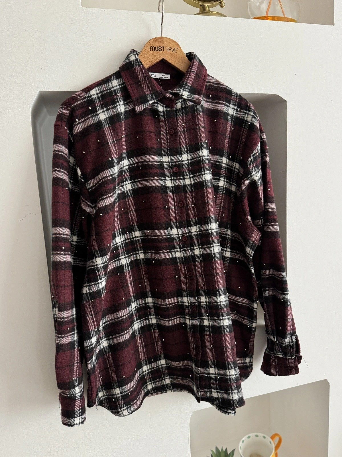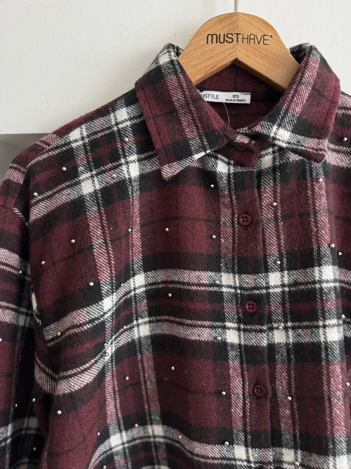 EKOSE GÜMÜŞ BONCUK ÇAKIM ODUNCU PAMUK GÖMLEK – BORDO