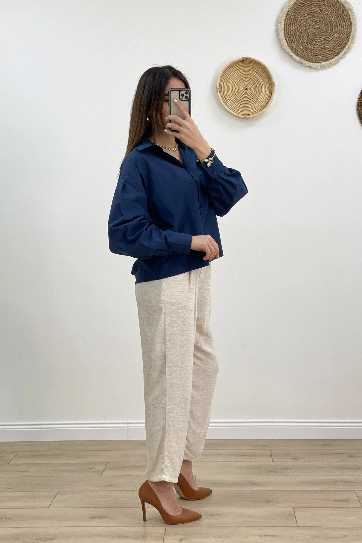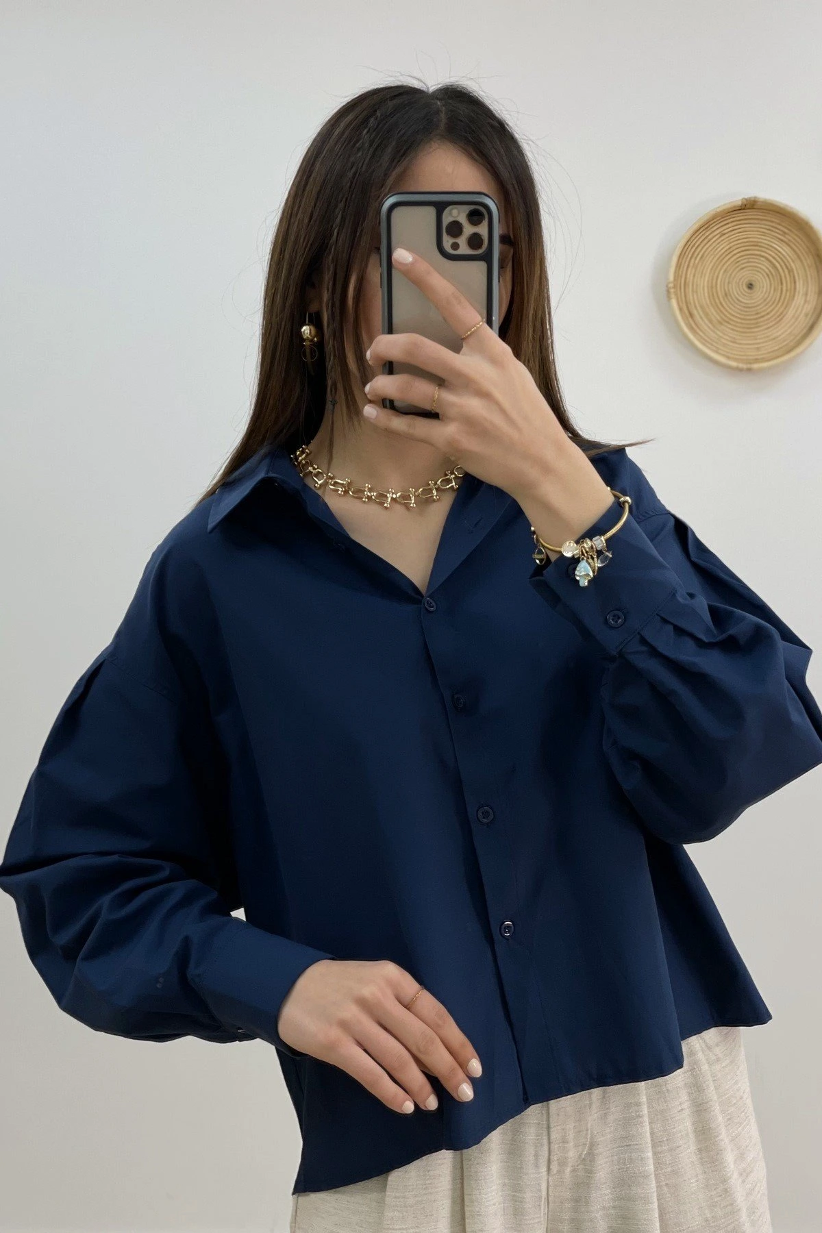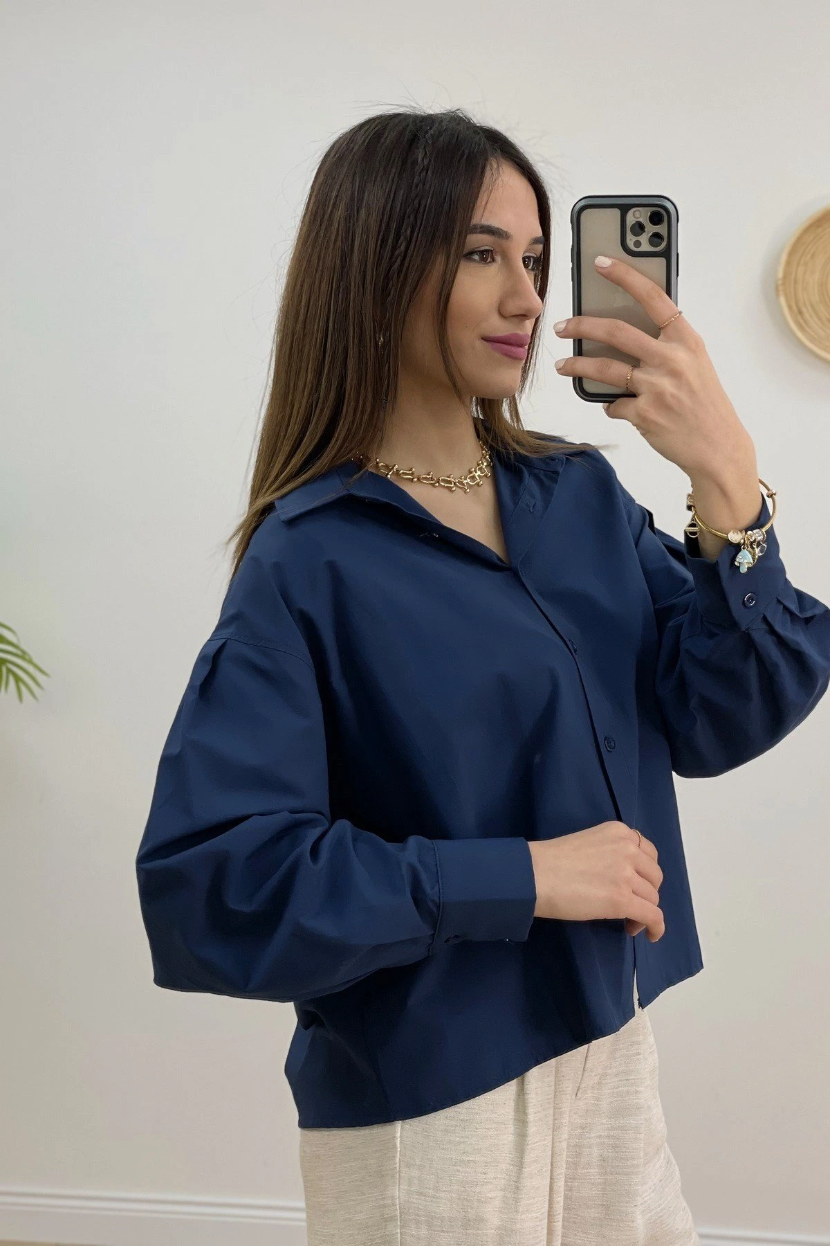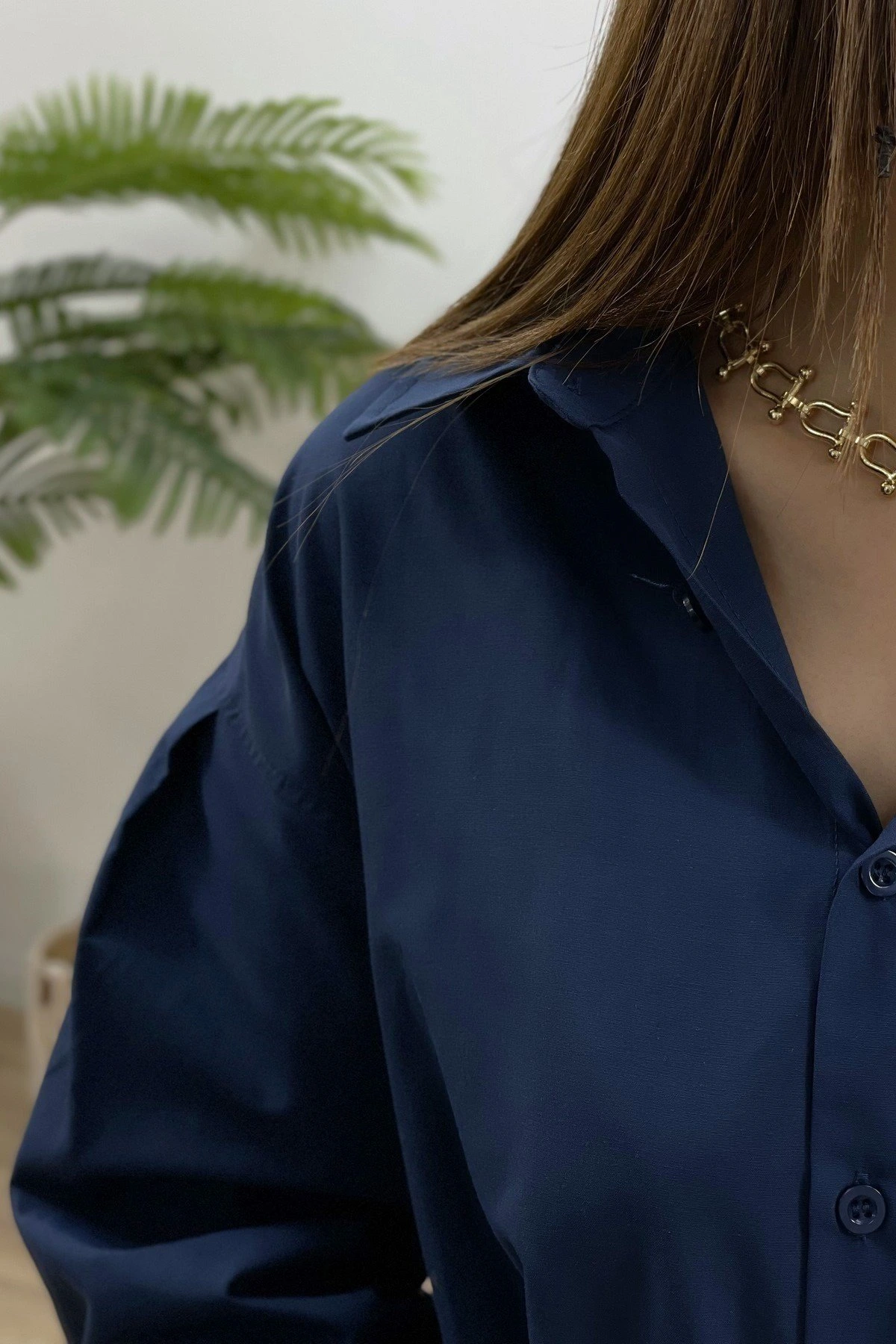 ENSE DÜĞMELİ ARKA ÇİFT KATLI GÖMLEK – LACİVERT