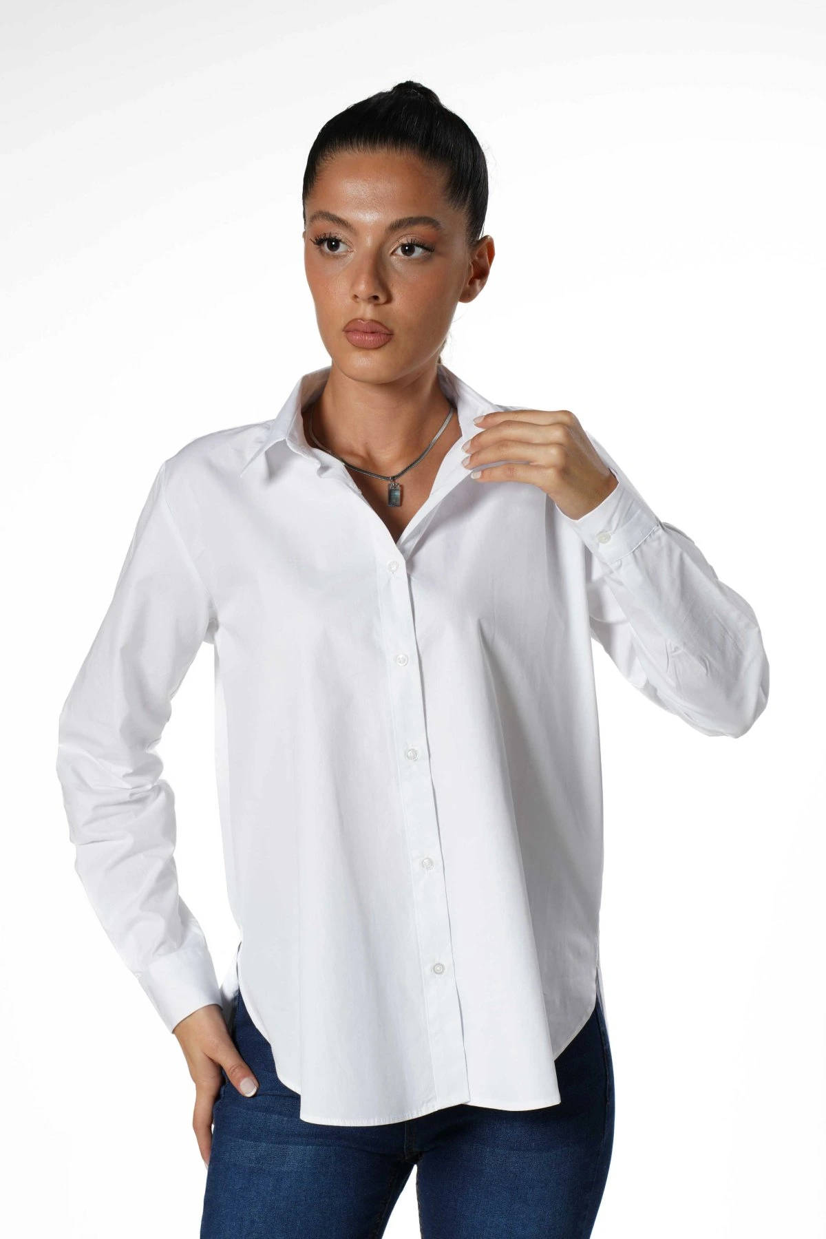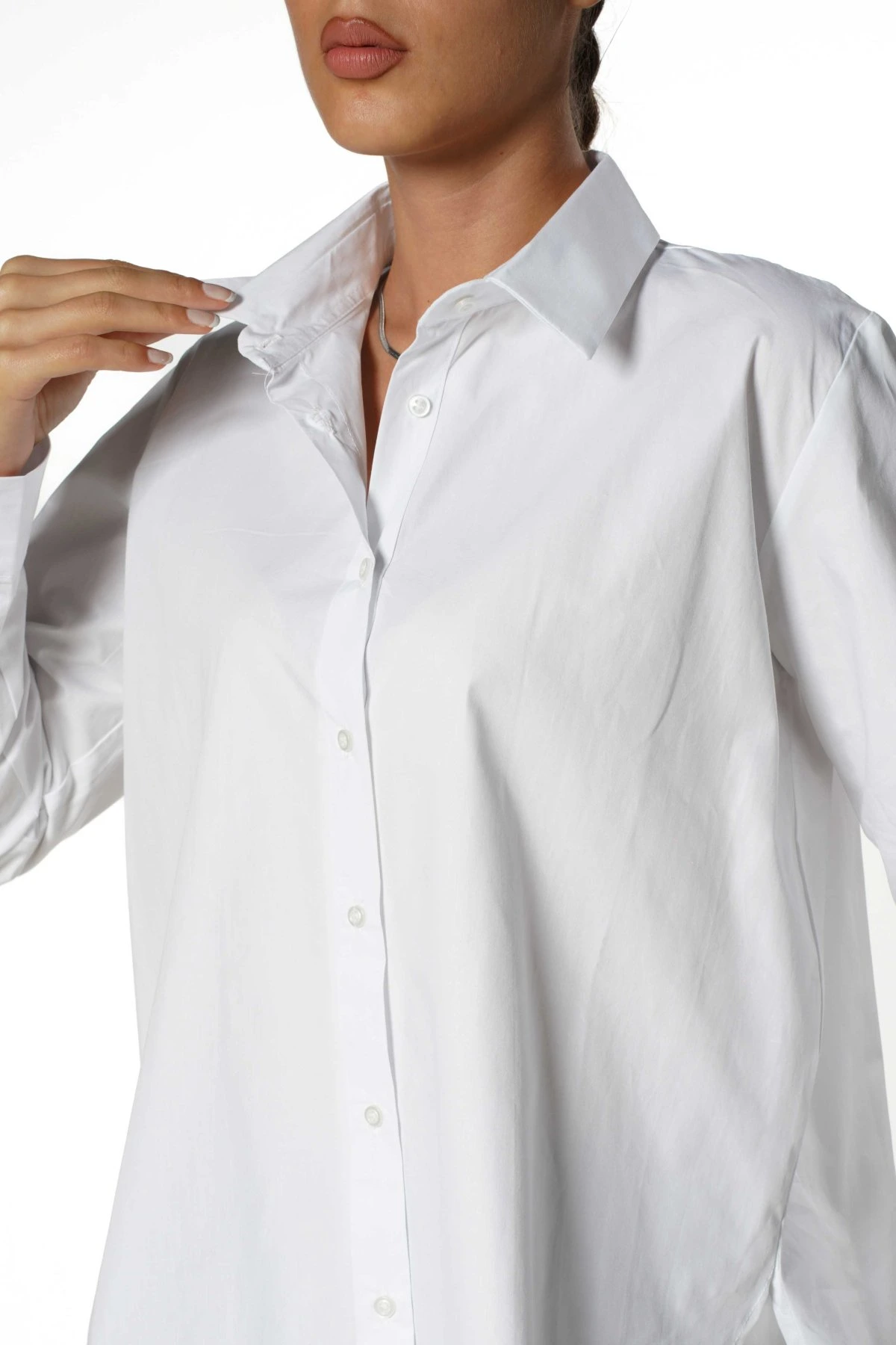 ETEĞİ OVAL ARKA KANATLI PAMUK GÖMLEK – BEYAZ