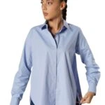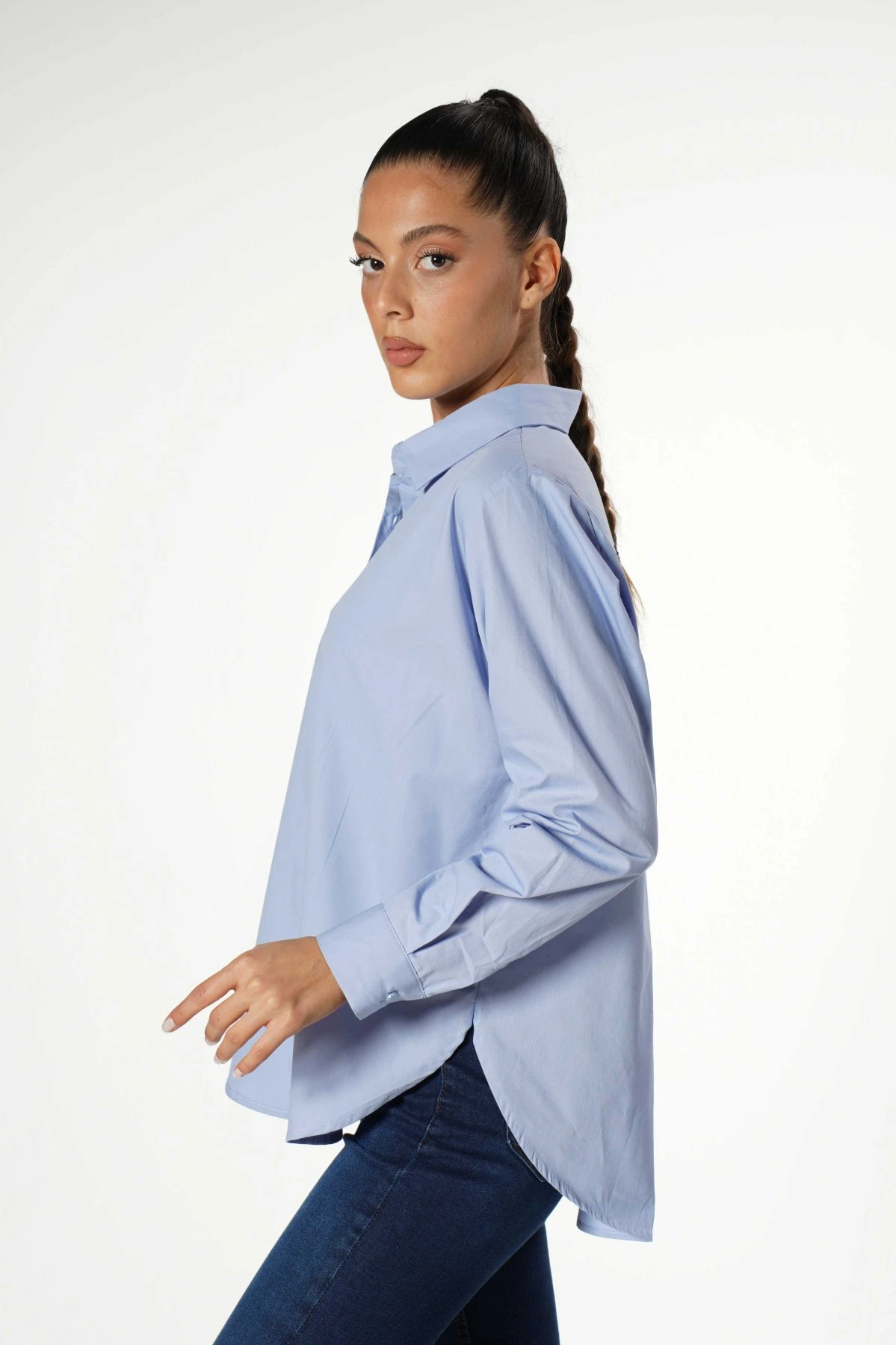 ETEĞİ OVAL ARKA KANATLI PAMUK GÖMLEK – MAVİ